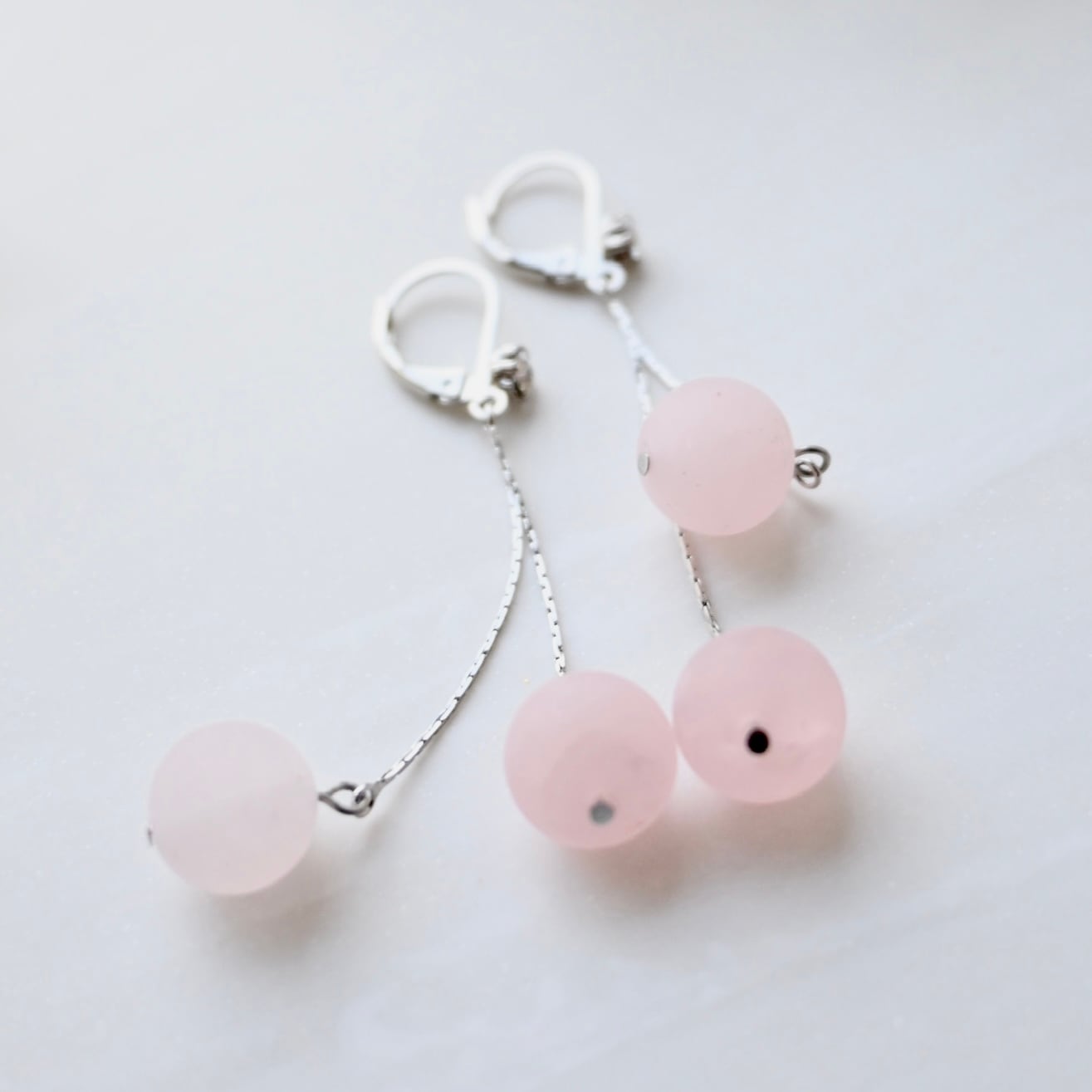 Amulet Cherry Earrings<Silver / Frost Rose Quartz>
