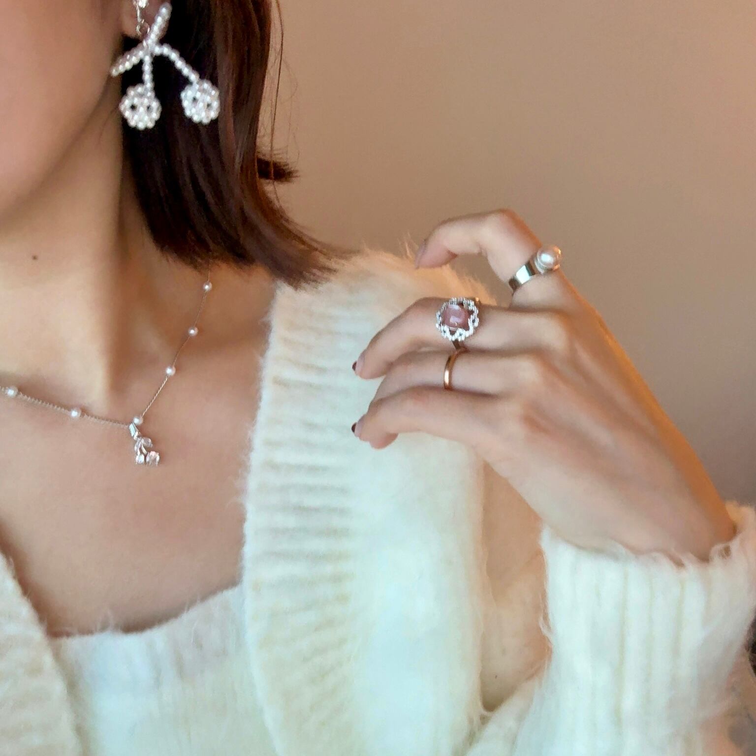 パールチェーンの華奢さにこだわり、チェリーチャームですが大人っぽさのあるデザインに仕上がりました。