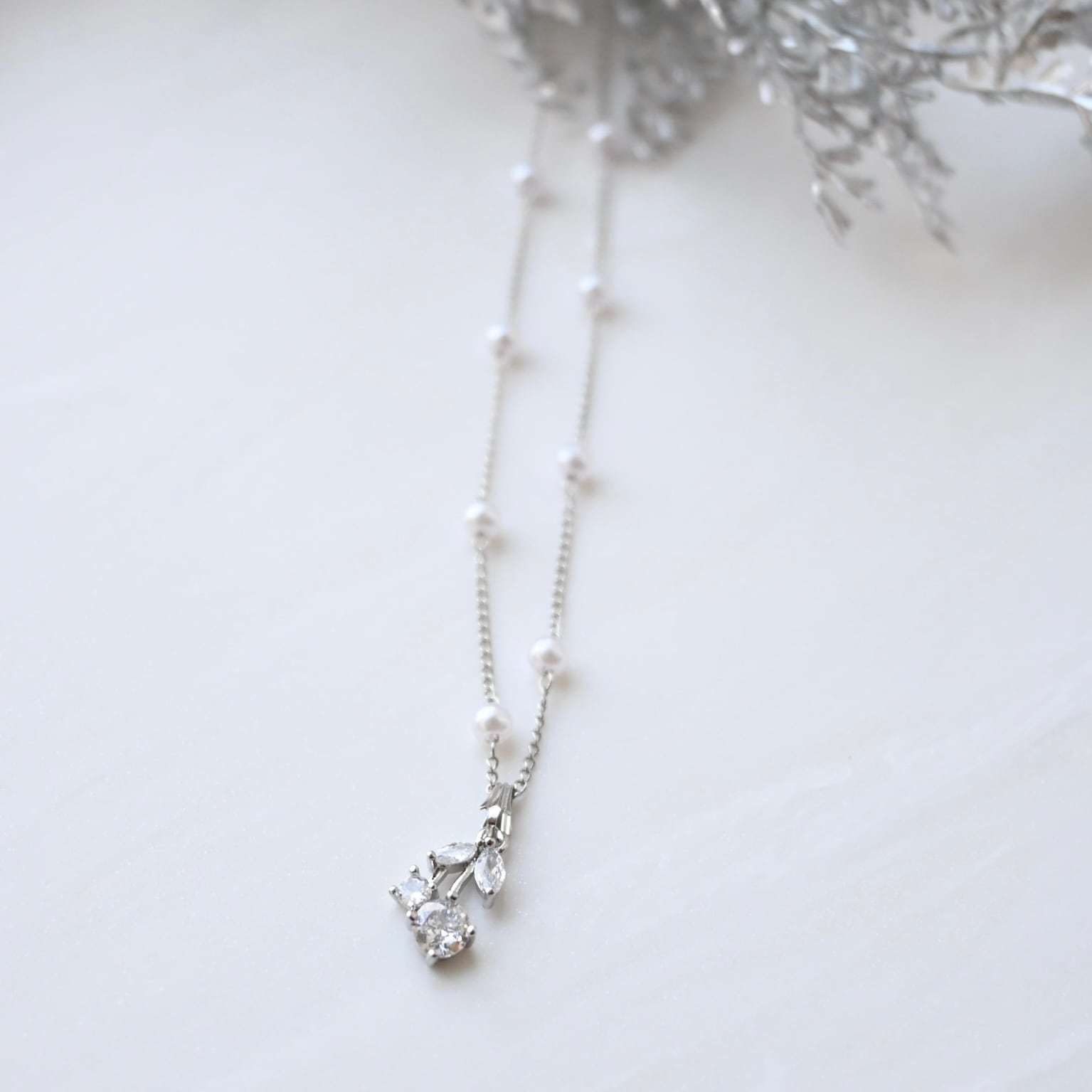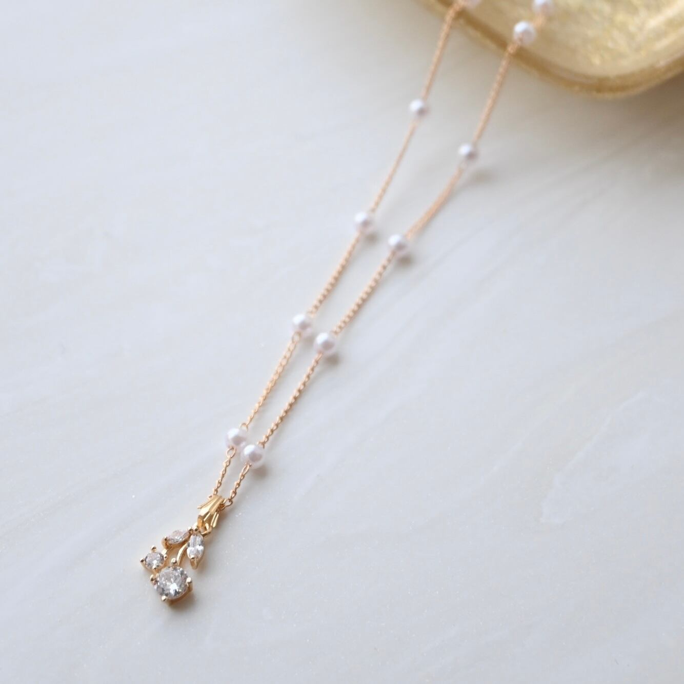 パールチェーンにキラキラ輝くキュービックジルコニアのチェリーチャームが