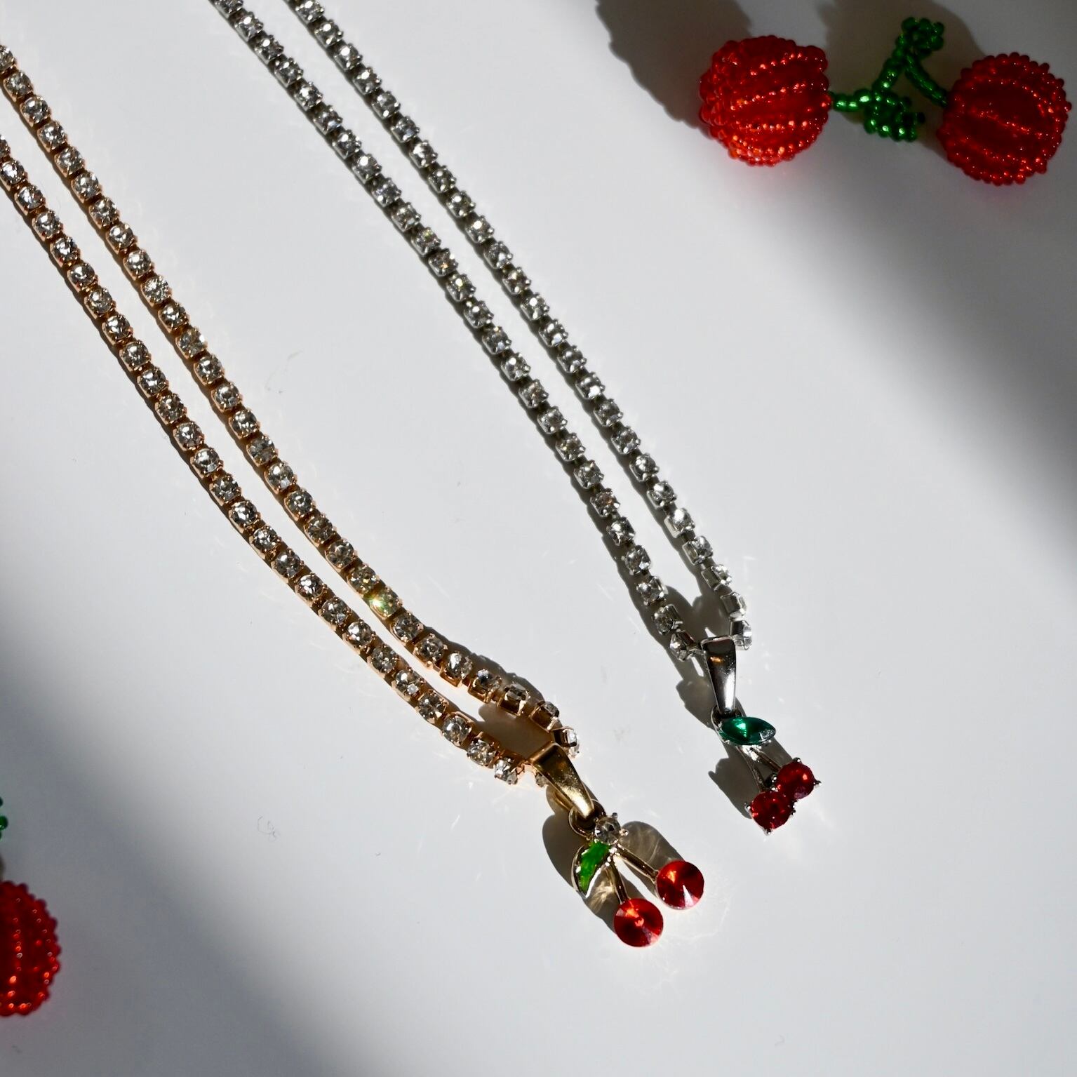 キラキラ輝くチェーンと、チェリーチャームが華やかなチョーカーです。