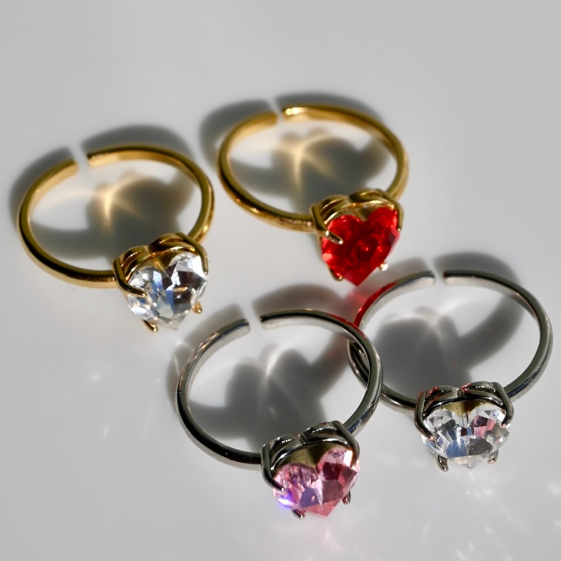 大粒のスワロフスキークリスタルを使用した、ハートリング。