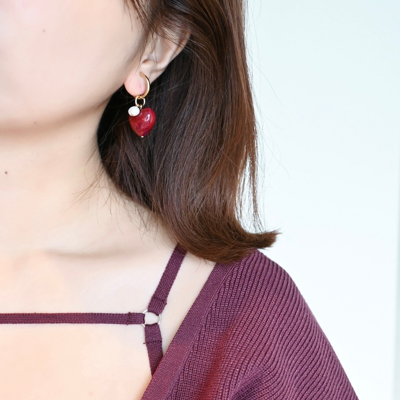今回はとびきりラブリーな赤のLove Hoopsと、ブラックやネイビーのお洋服と
