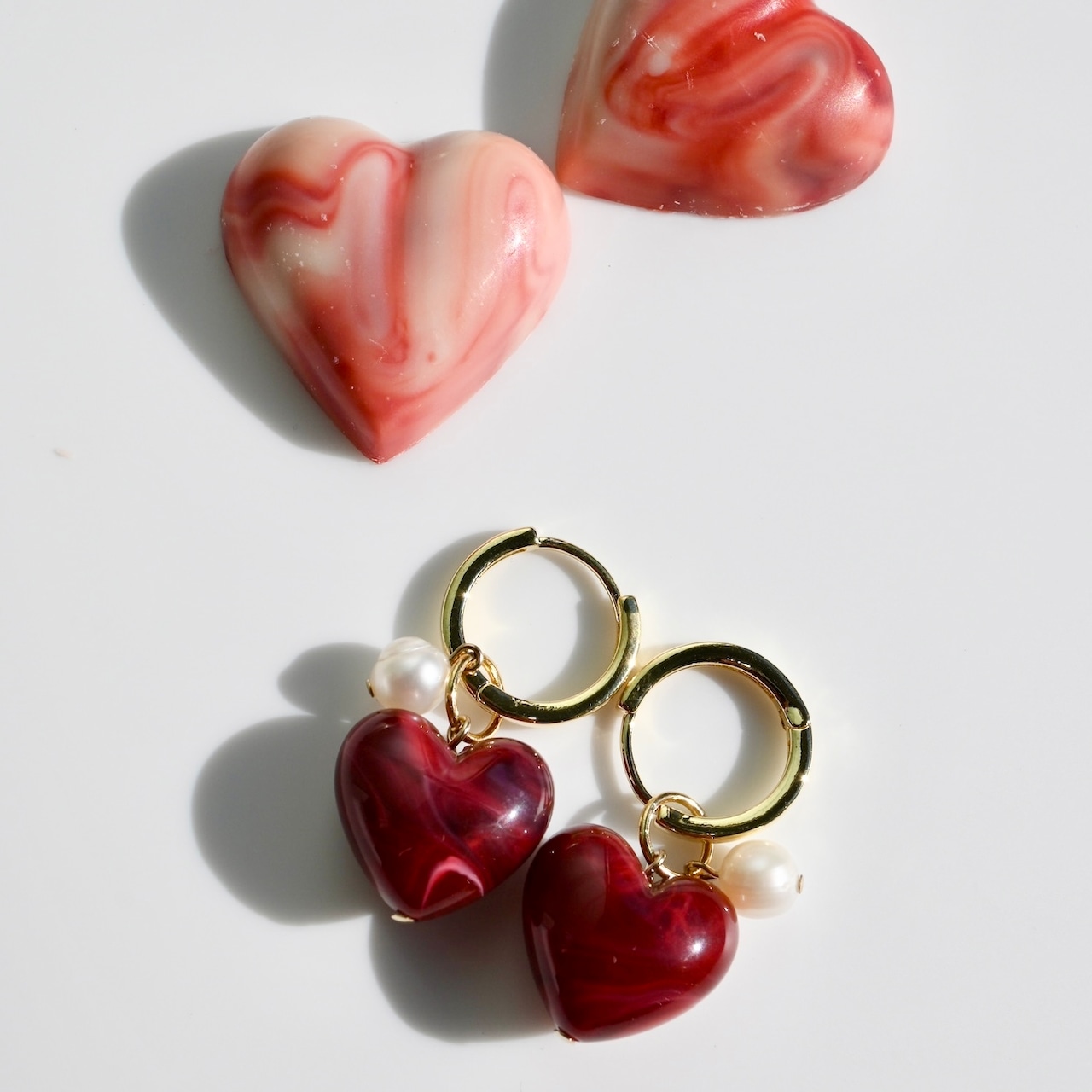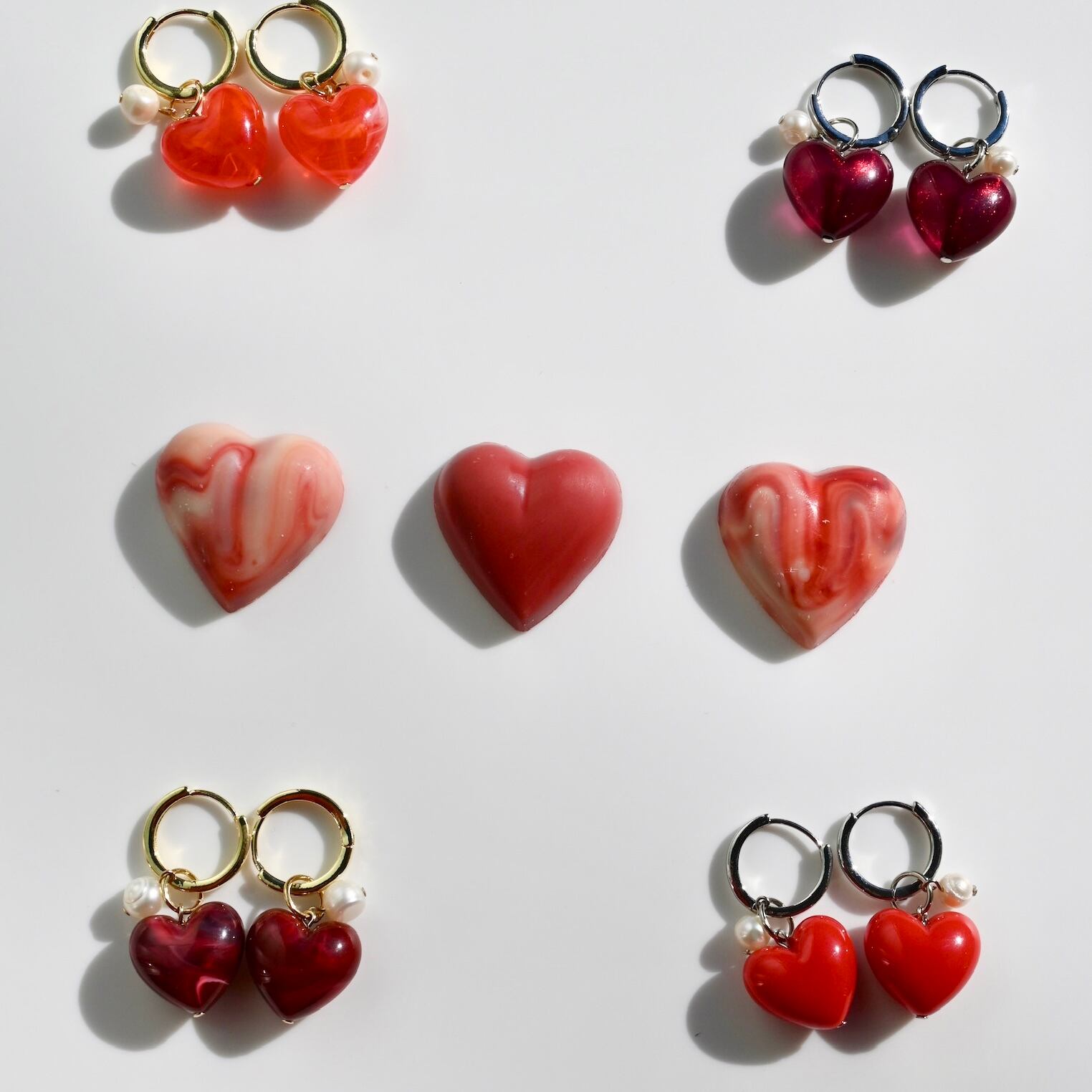 ぷっくりしたハートモチーフですが、透明感のあるカラーなので