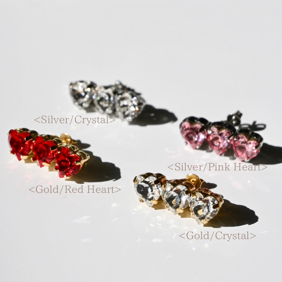 Three Heart Earrings<Gold / Crystal>※数量限定品