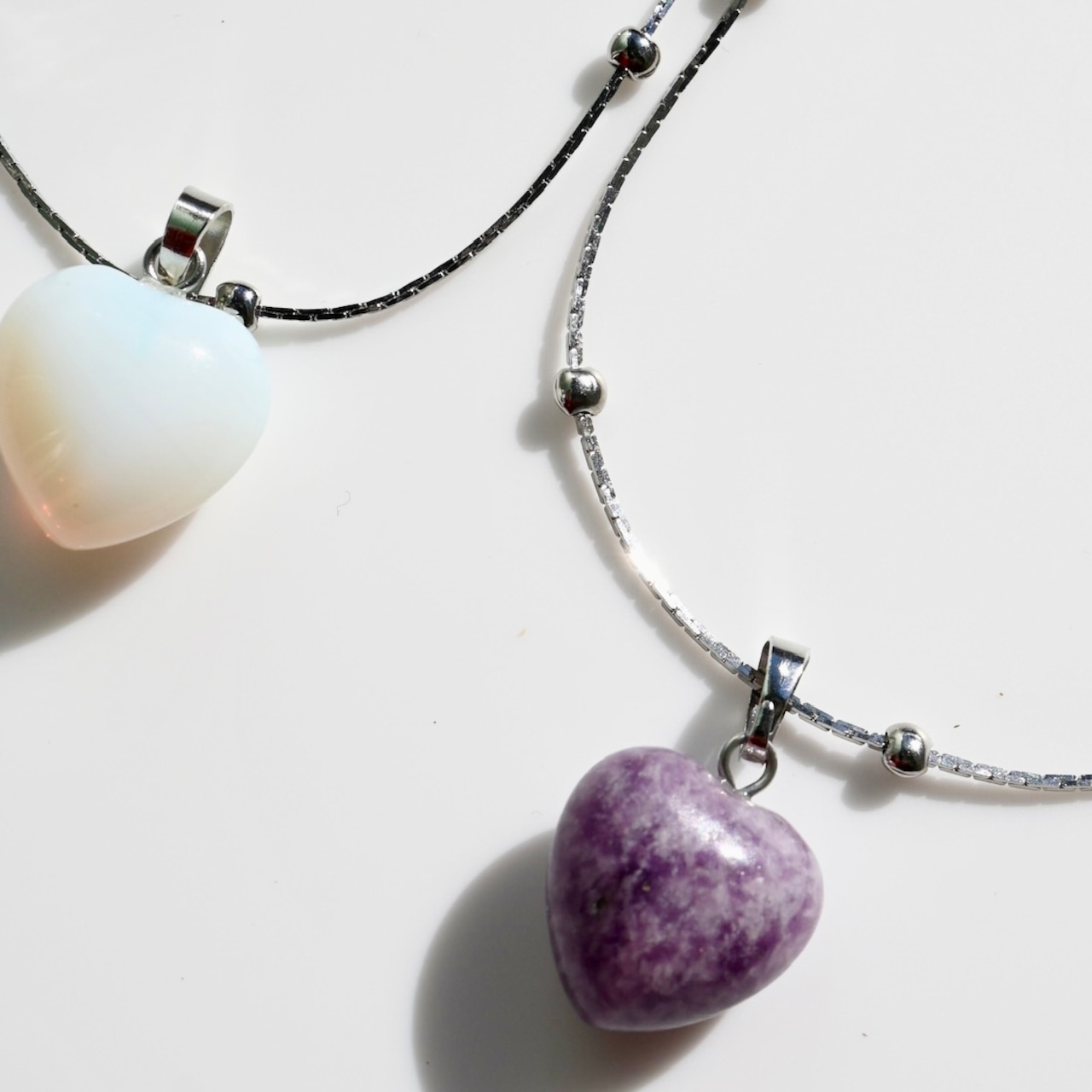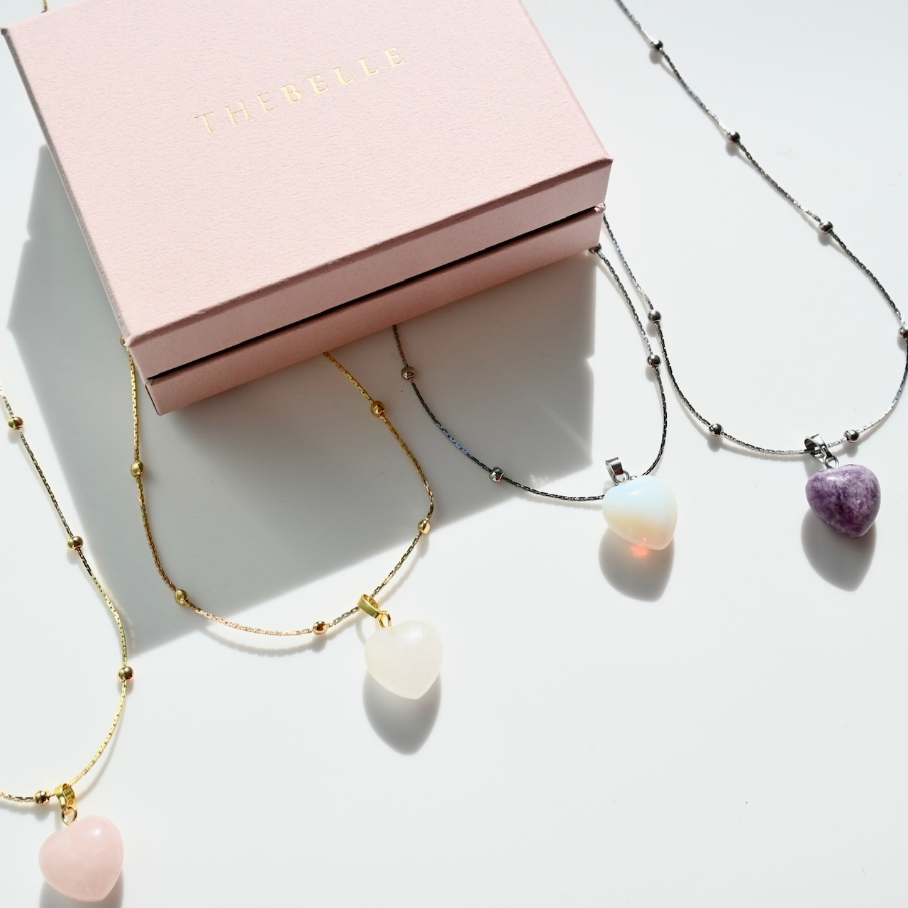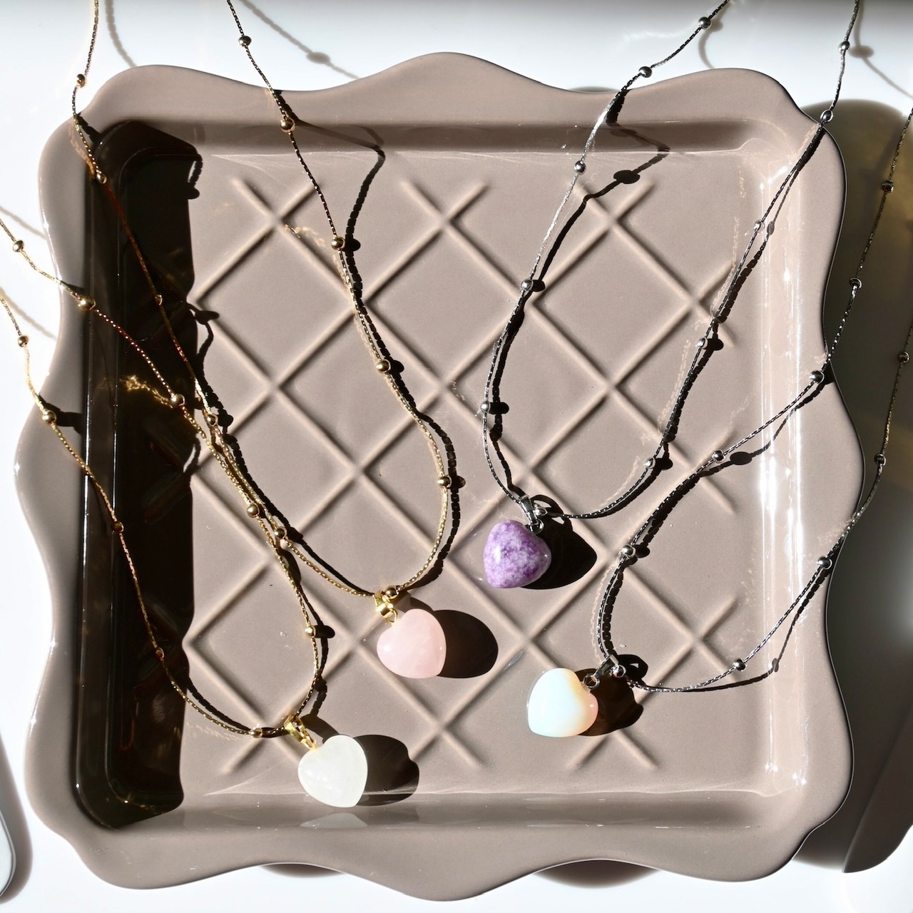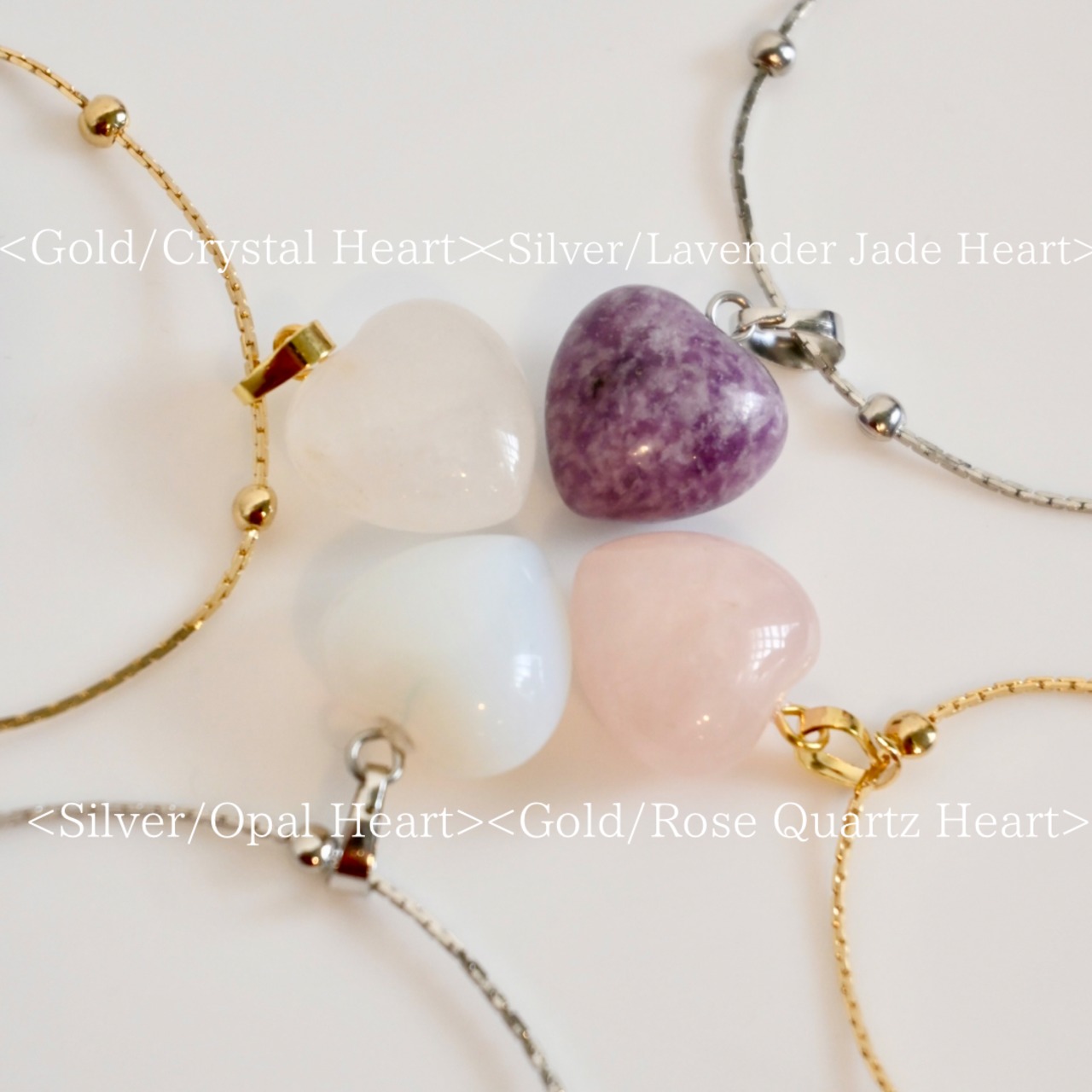 ぷっくりしたハートの天然石が可愛い、ネックレスシリーズです。