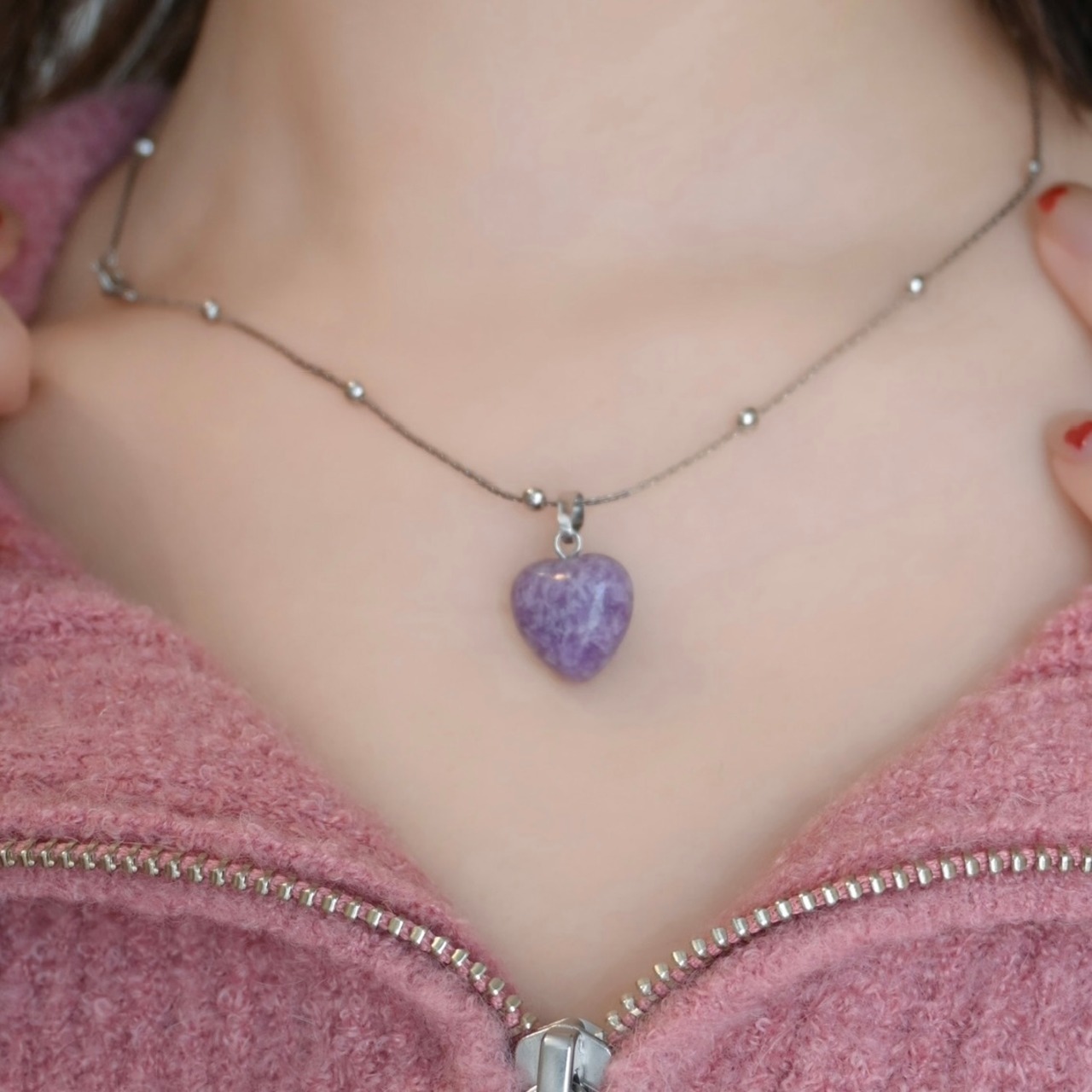 Amulet Heart Necklace<Silver/Lavender Jade Heart>