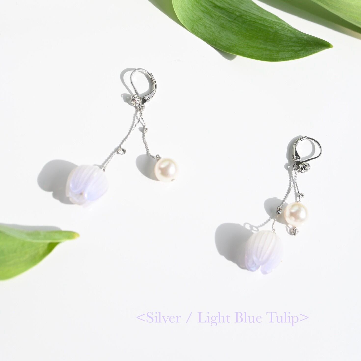Colorful Tulip Earrings<Silver / Light Blue Tulip>