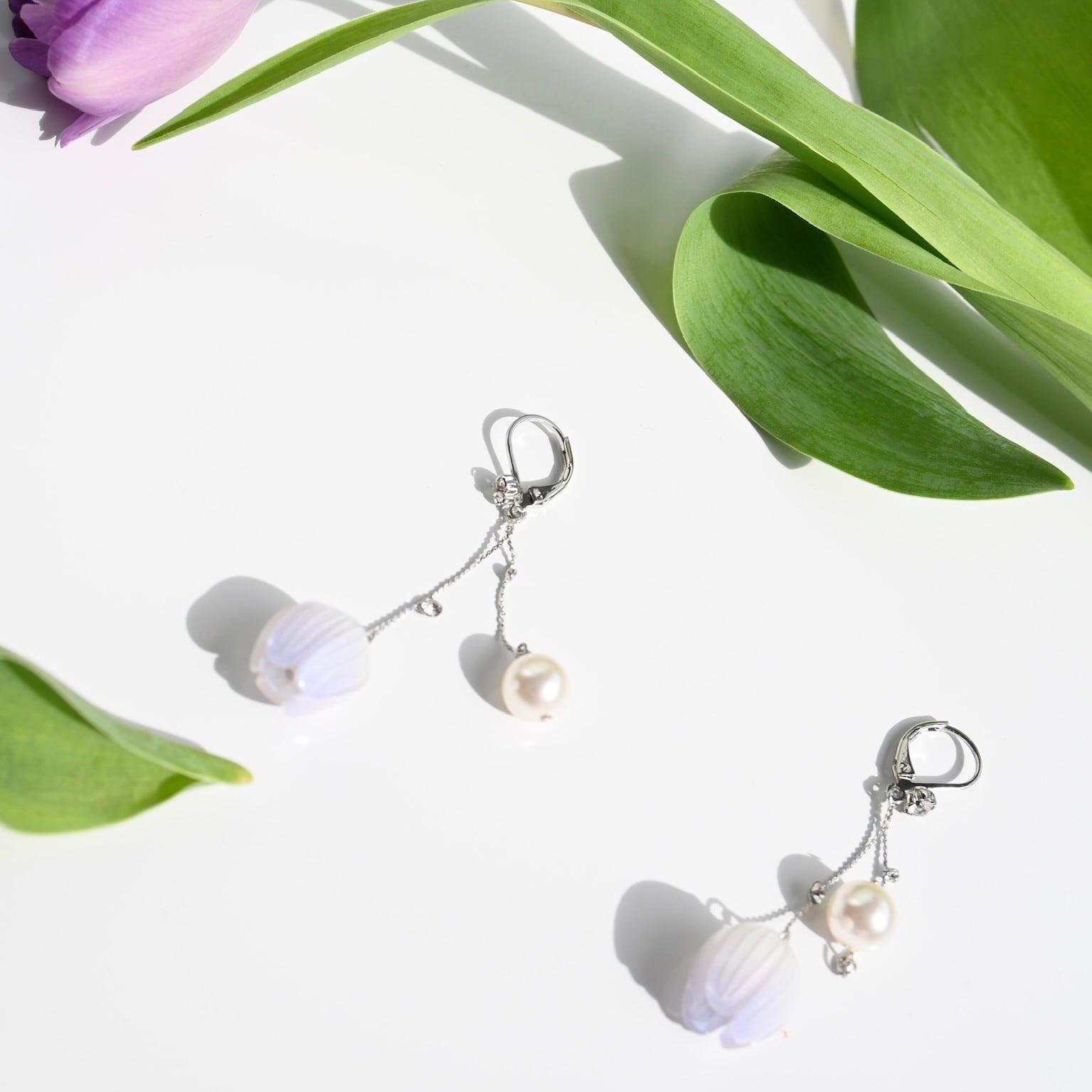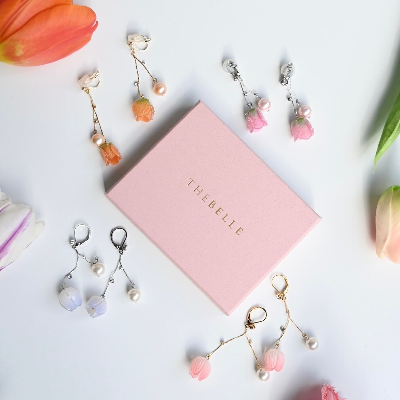 チューリップのお花が揺れる、みずみずしく幻想的なイヤリング、ピアスシリーズです。