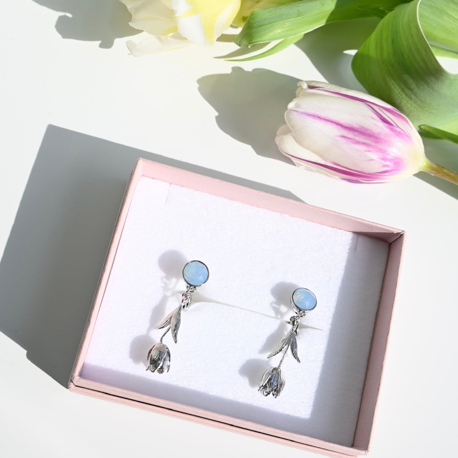 Crystal Tulip Earrings<Silver / White Blue Tulip>