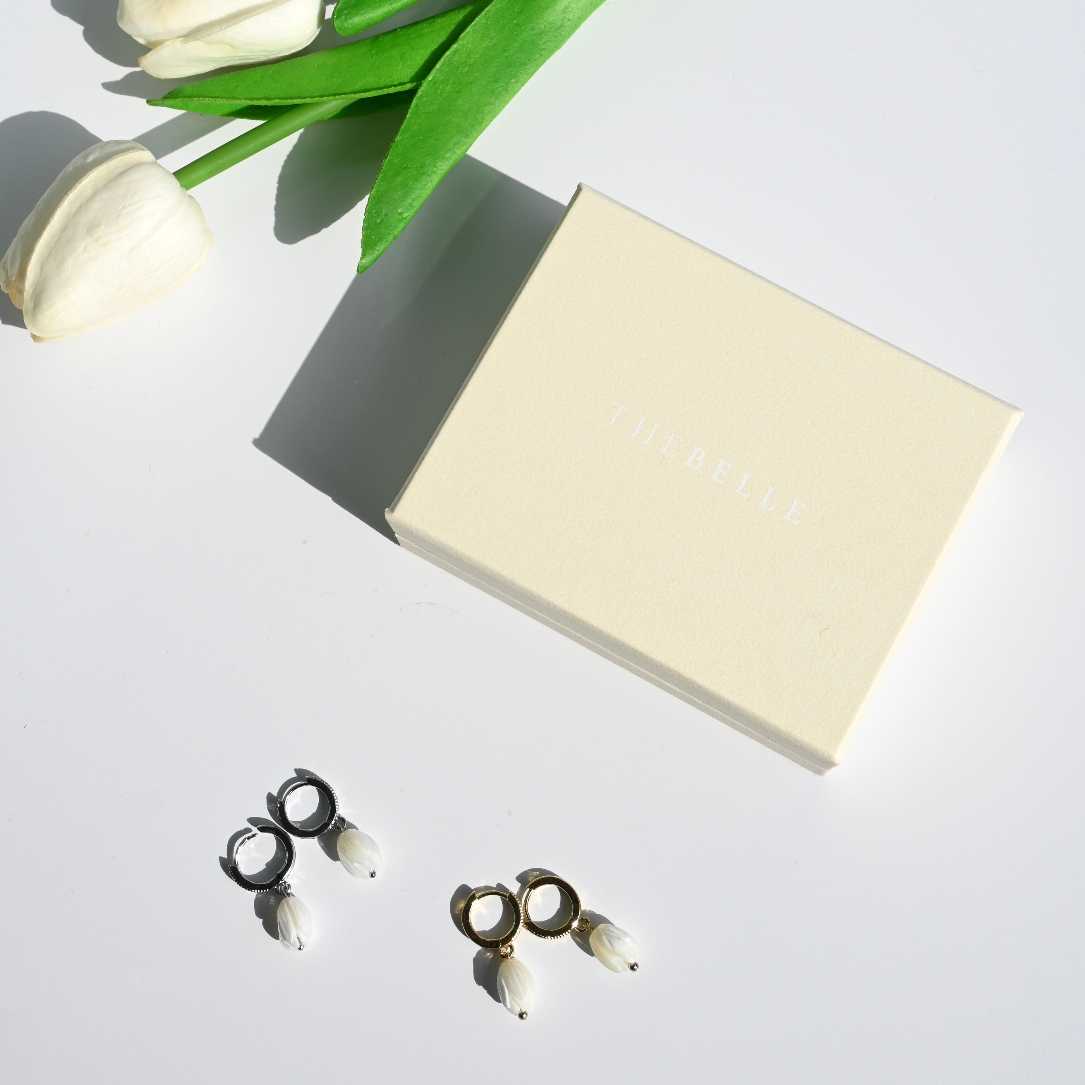 本物のシェルを使用したチューリップモチーフのフープピアスです。