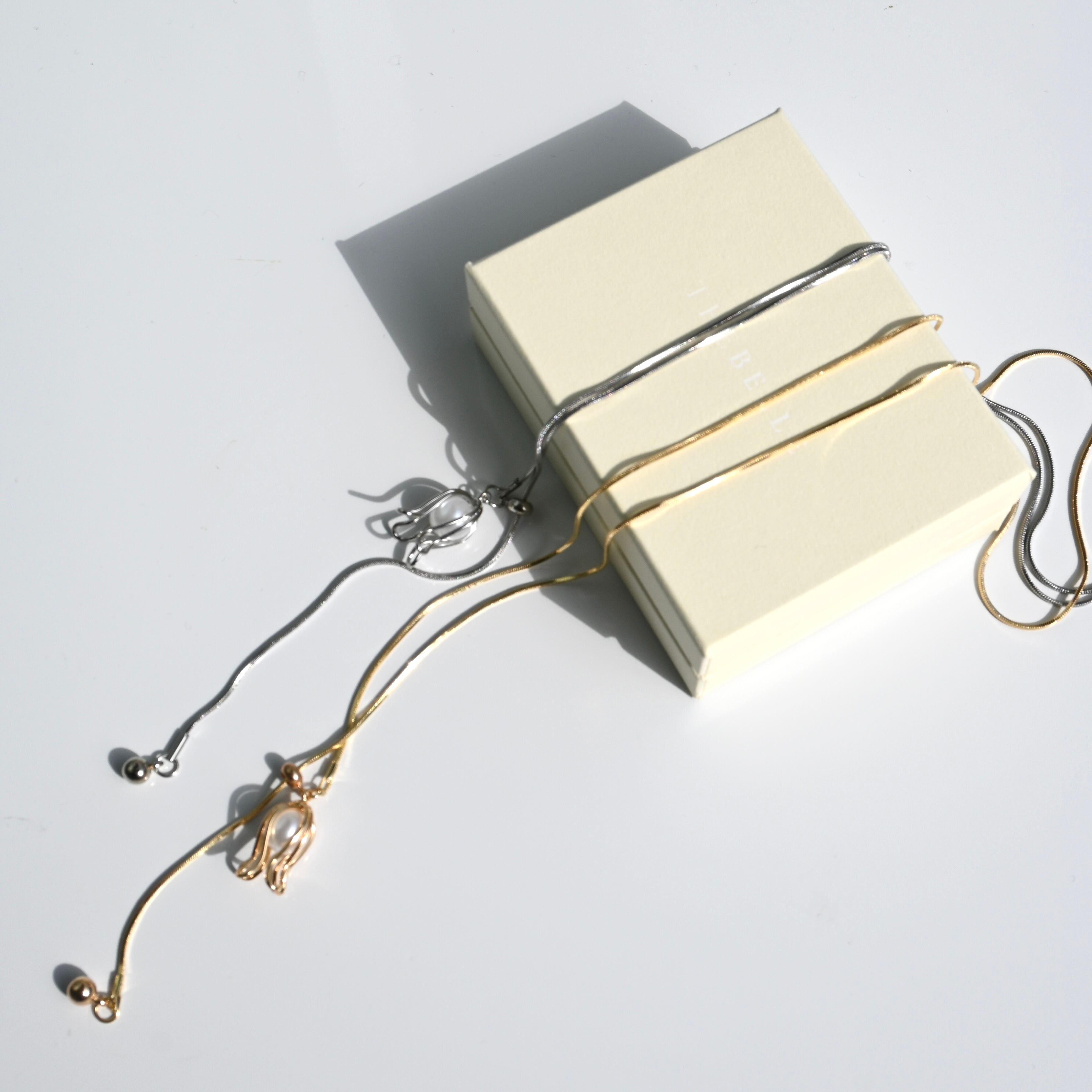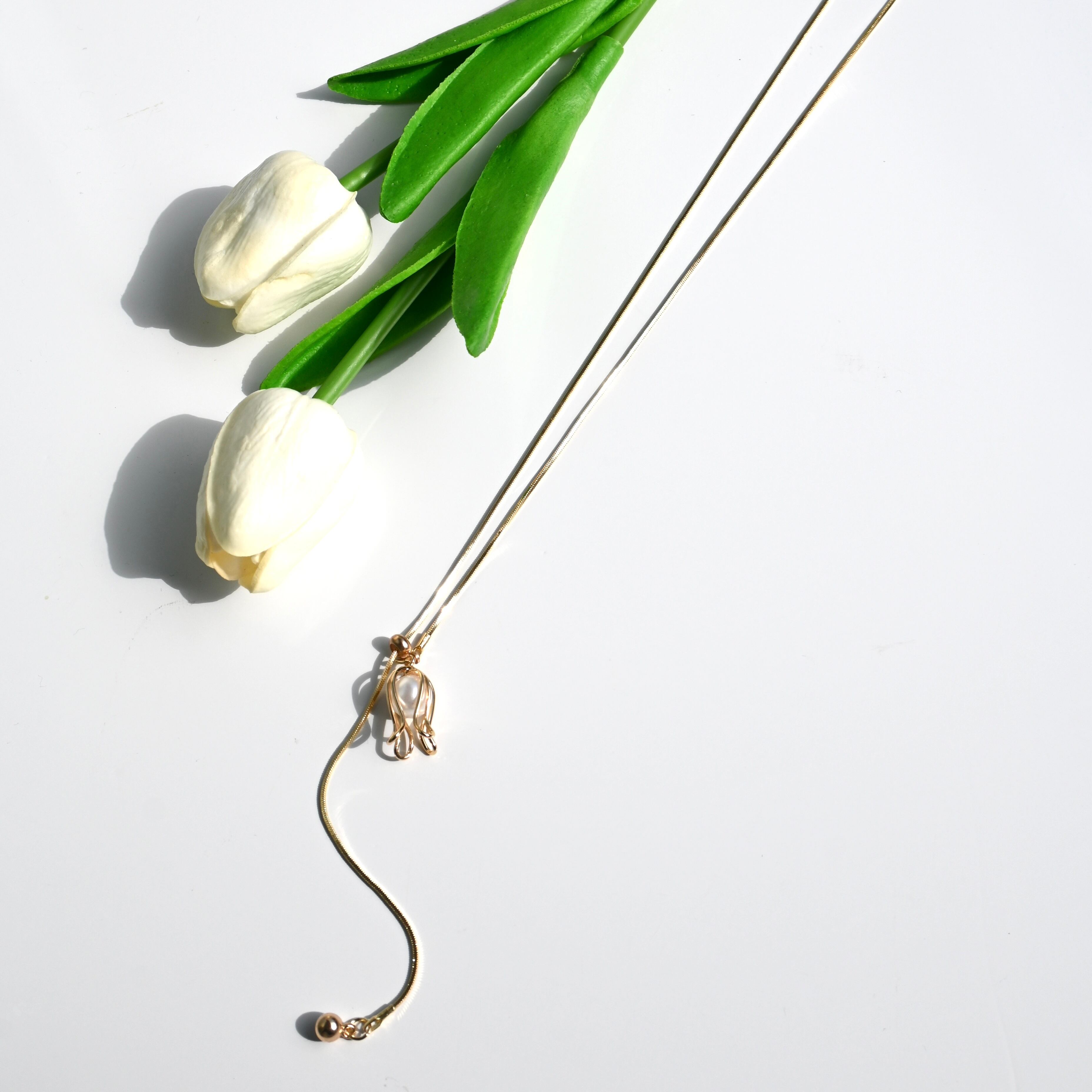 ワイヤーにパールが包まれたチューリップチャームがポイントの、ロングネックレスです。