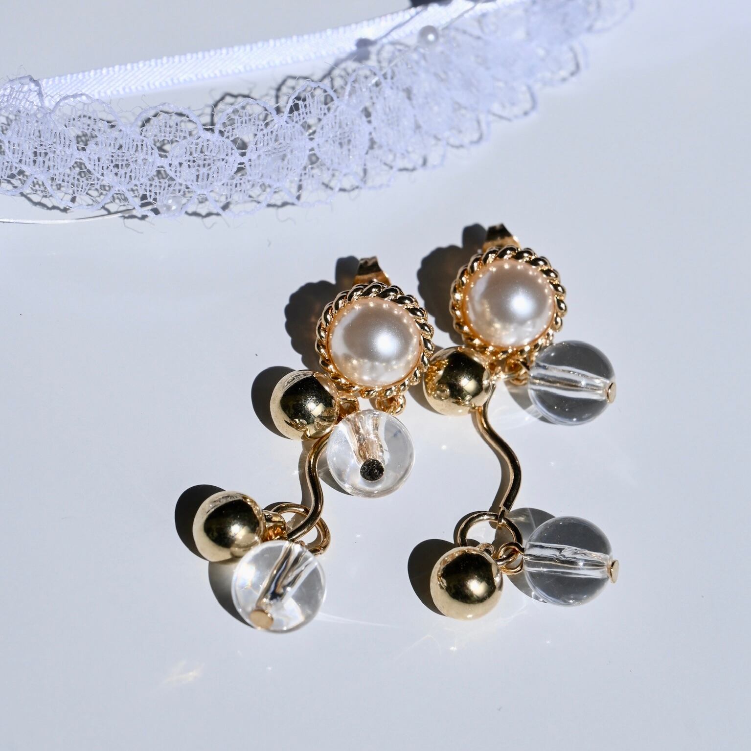 フェミニンな雰囲気たっぷりな、パールモチーフのイヤリングピアスシリーズです。