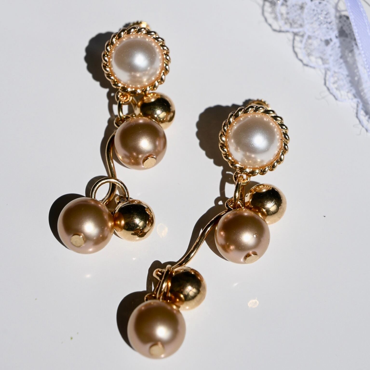 Feminine Pearl Earrings<Gold/Rose Gold>