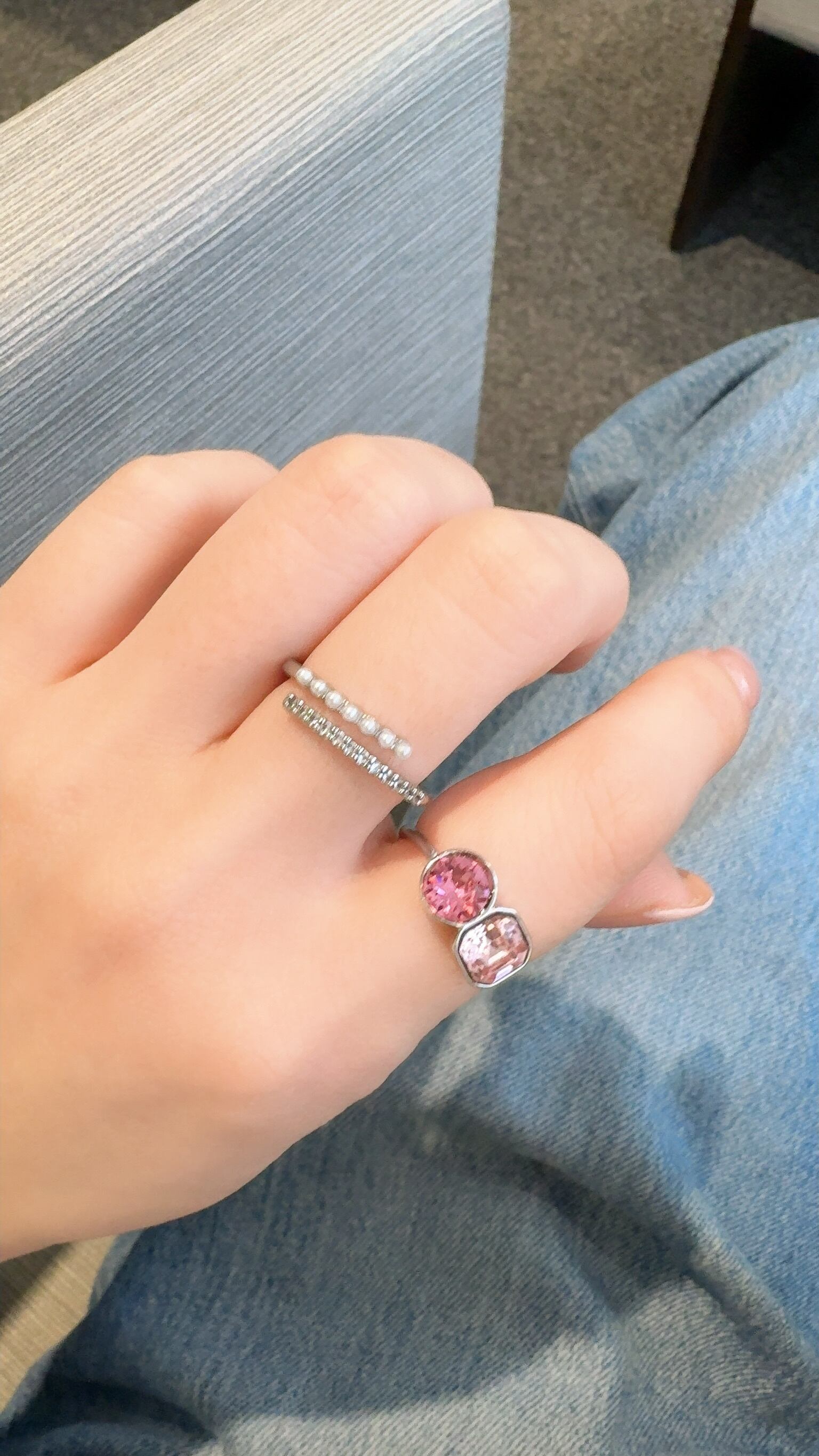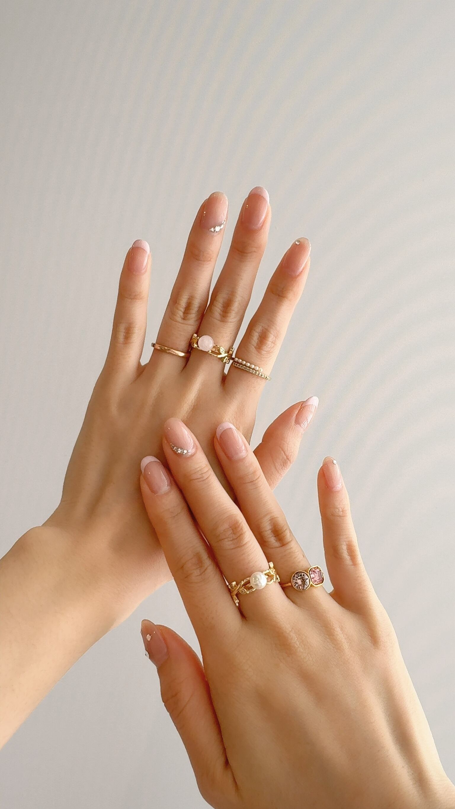 繊細なパールとクリスタルが美しい、フリーサイズのリングシリーズ。