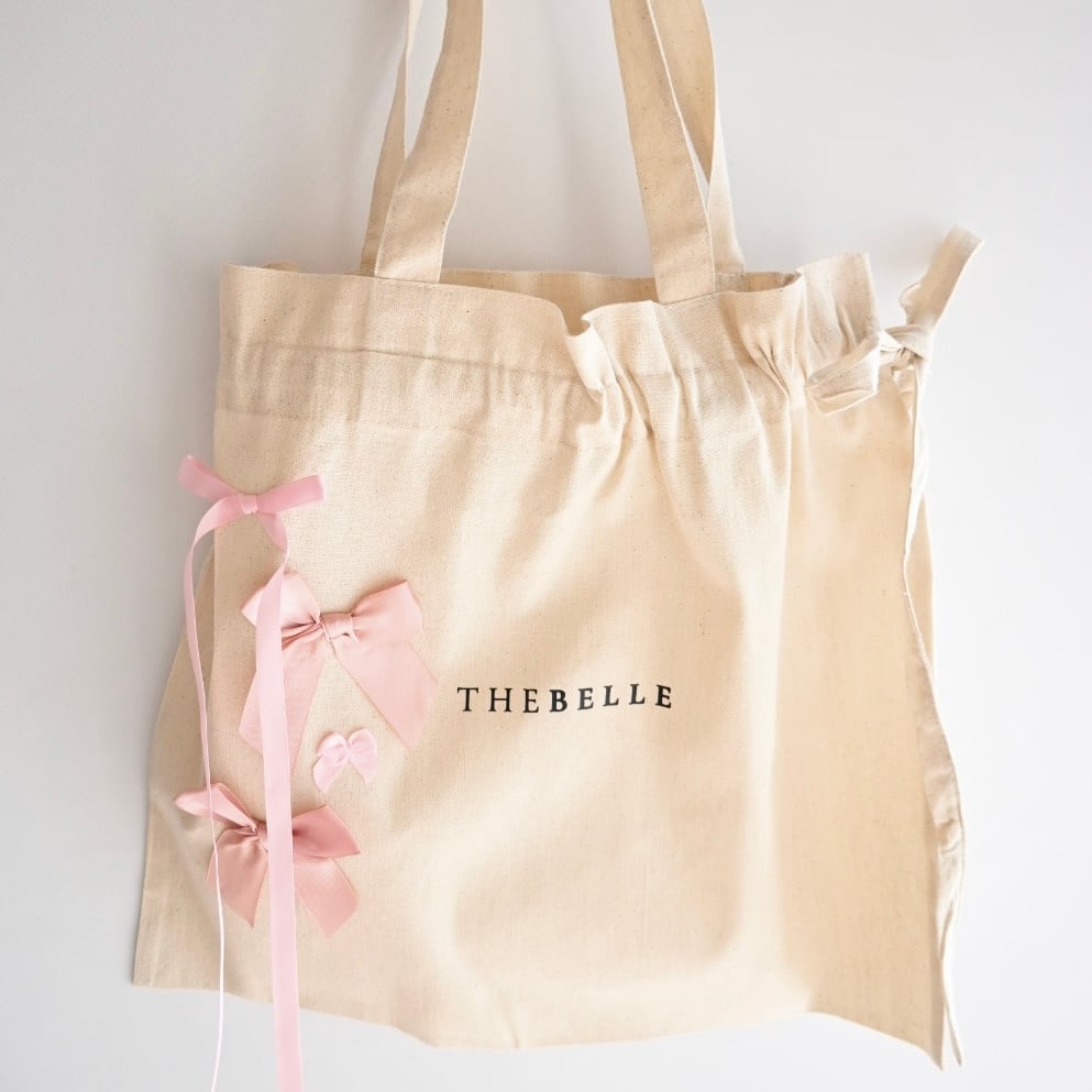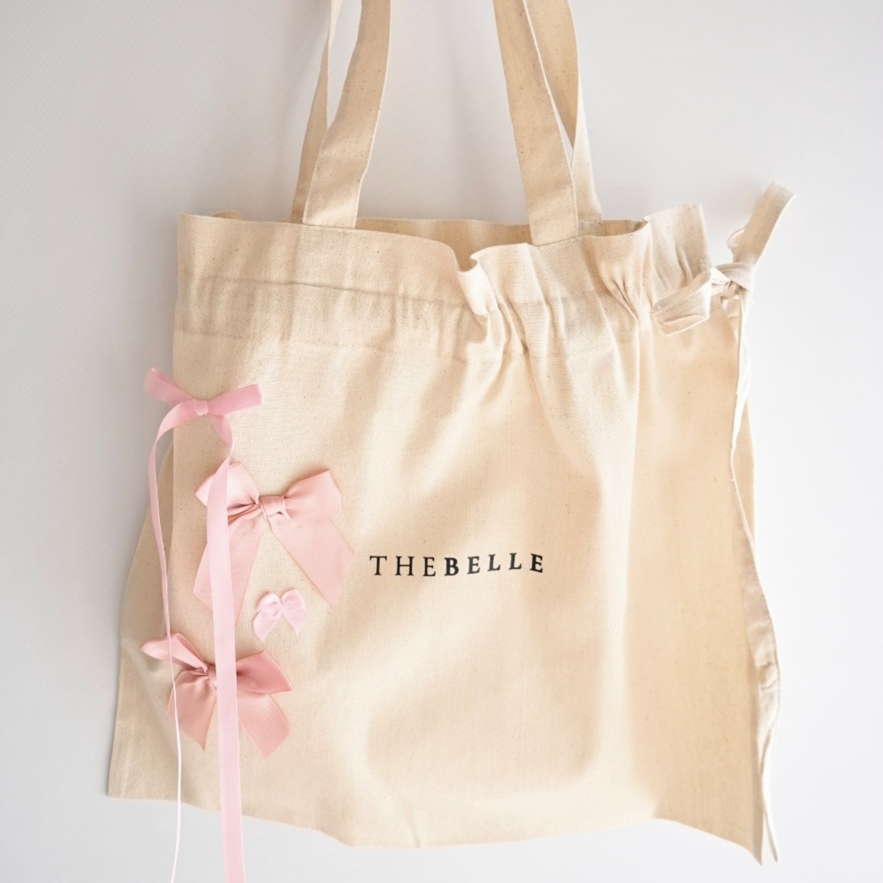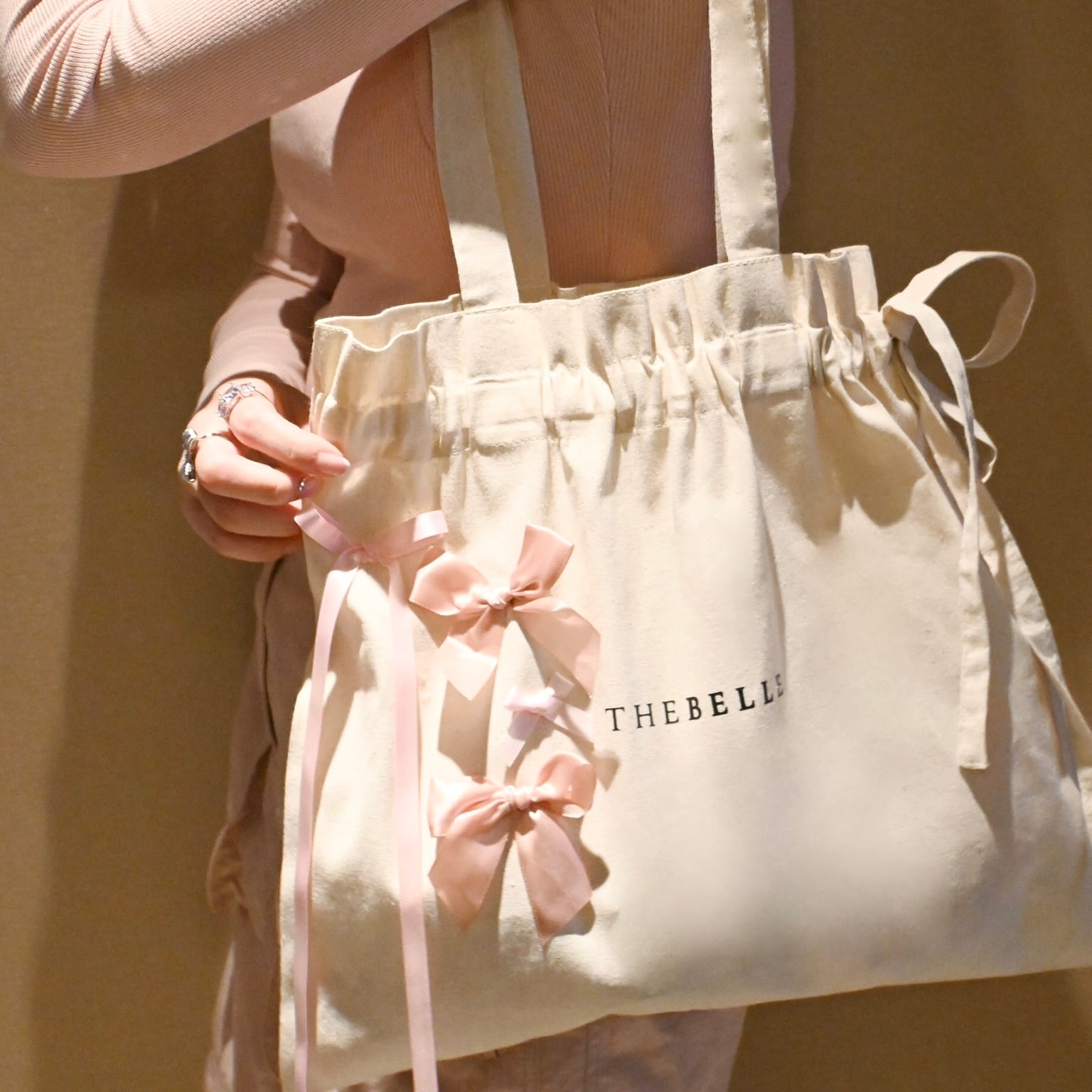 THE BELLE Ribbon Tote Bag<White×Pink ribbon>