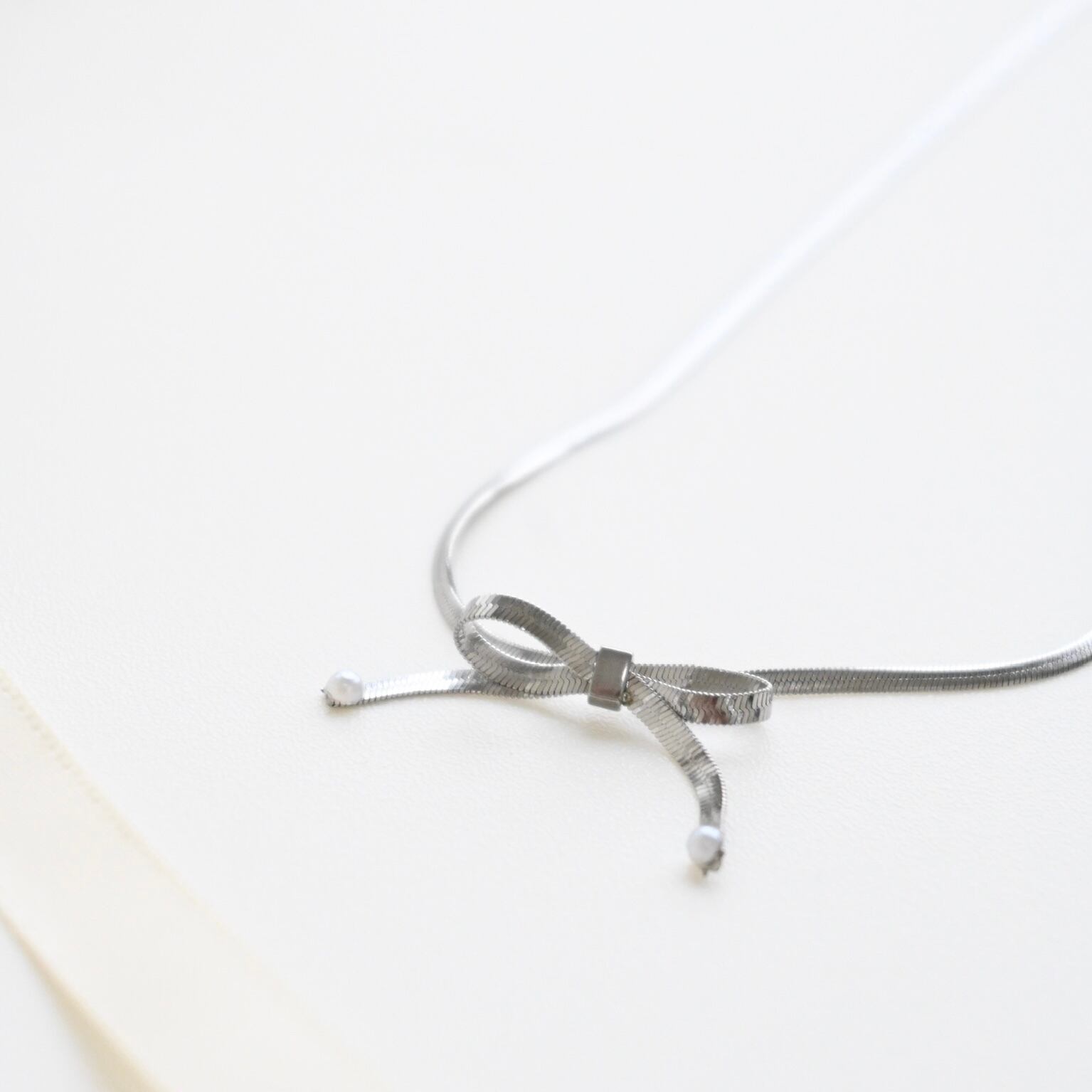 リボンの先端部分には、さりげなくストーンを配し、遊び心のあるアイテムとなりました。