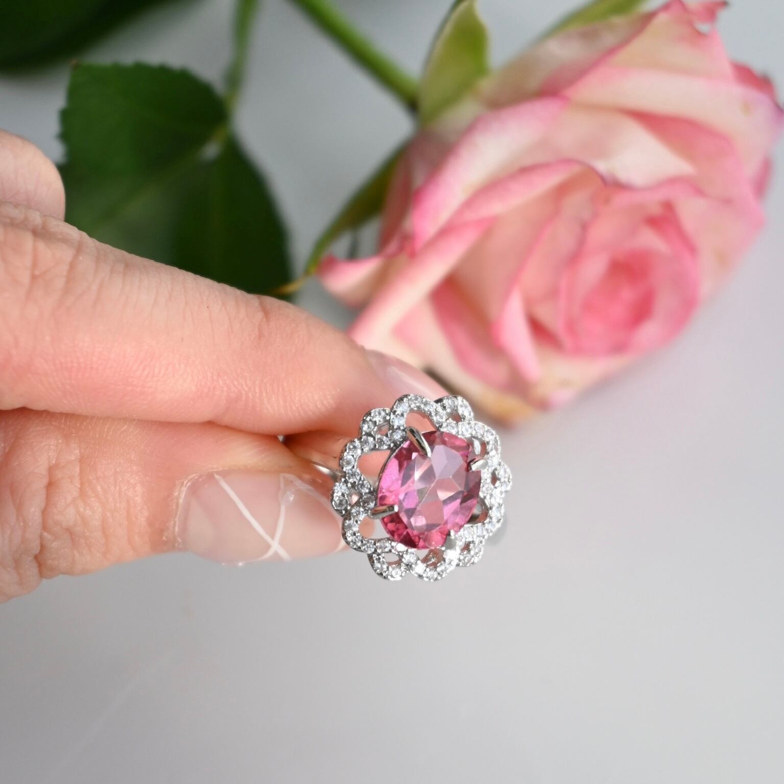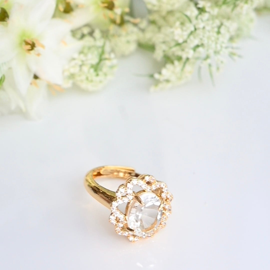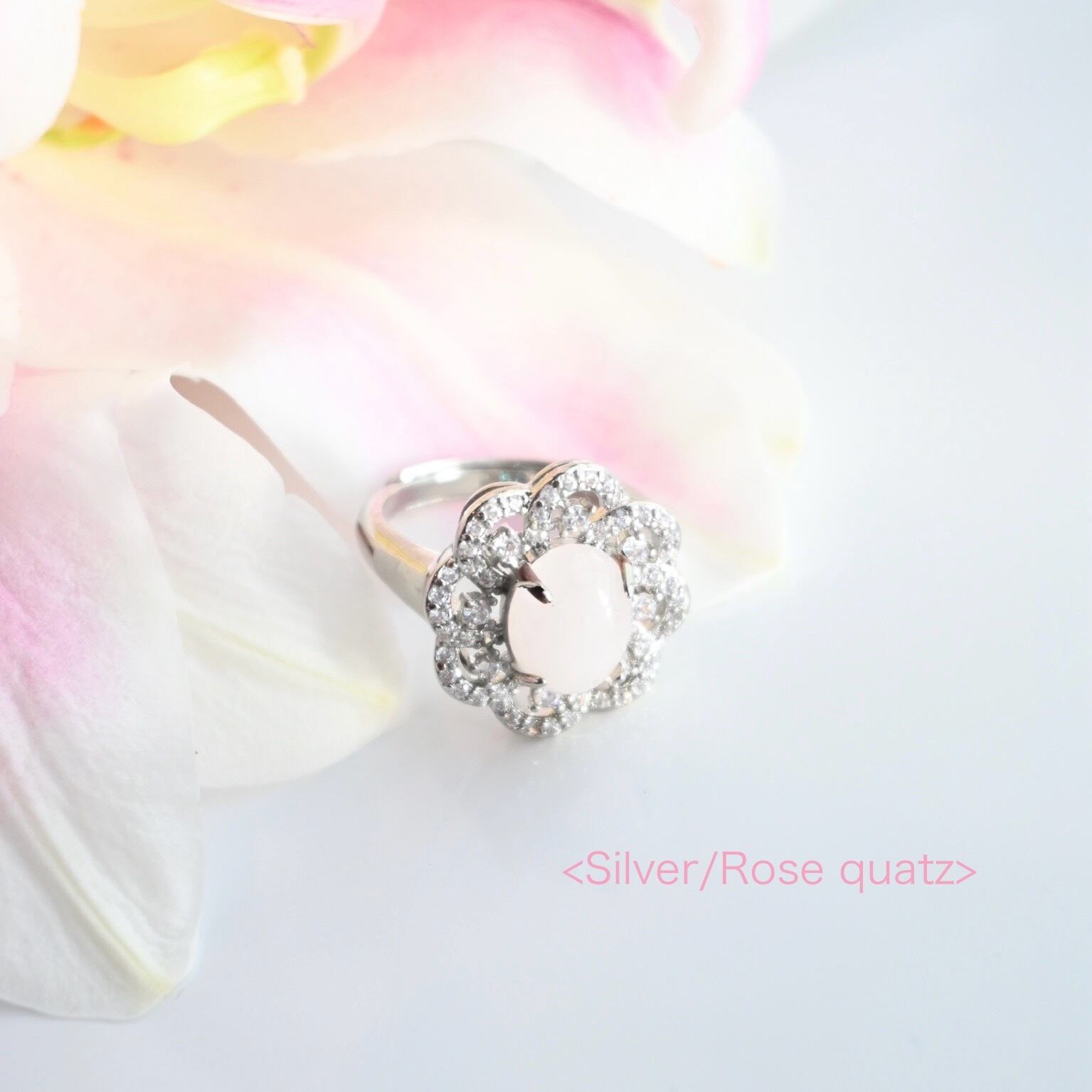 輝くキュービックジルコニアと天然石を使用した、豪華なリングです。