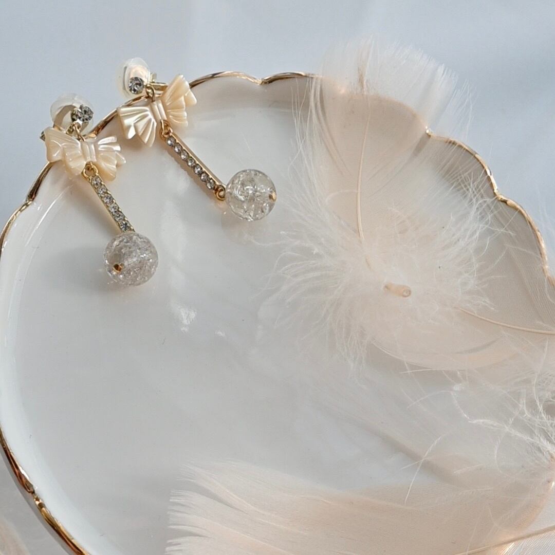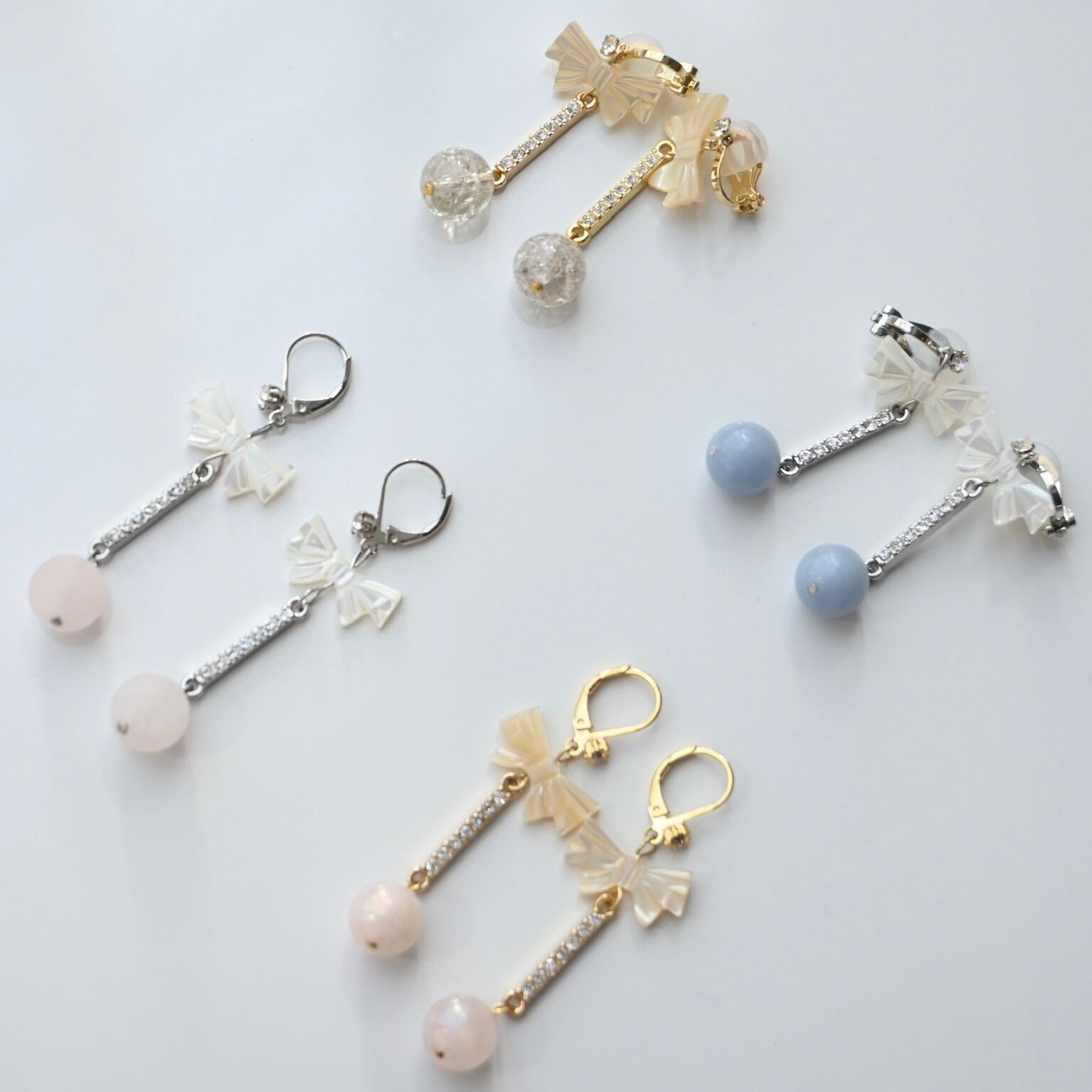 “リボンのシェルと天然石が揺れる”ピアス/イヤリングシリーズです。