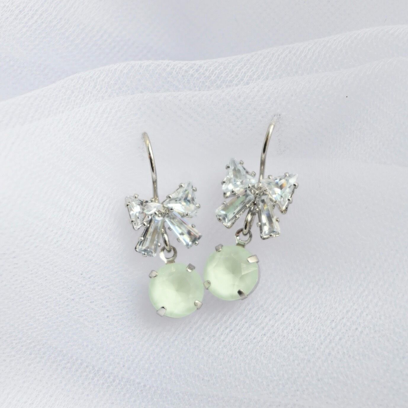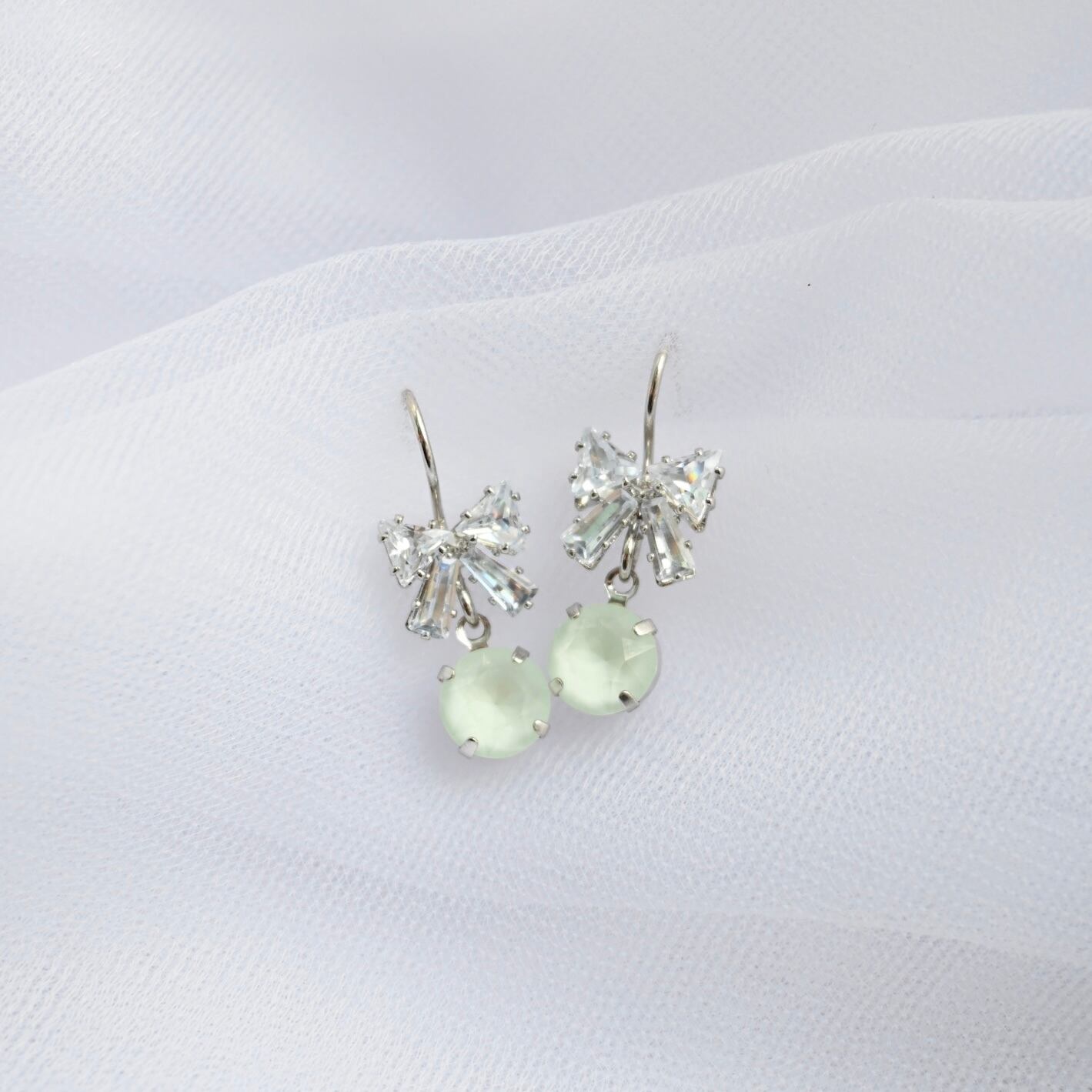 Tiny Ribbon Earrings<Silver/Pastel Green Ribbon>