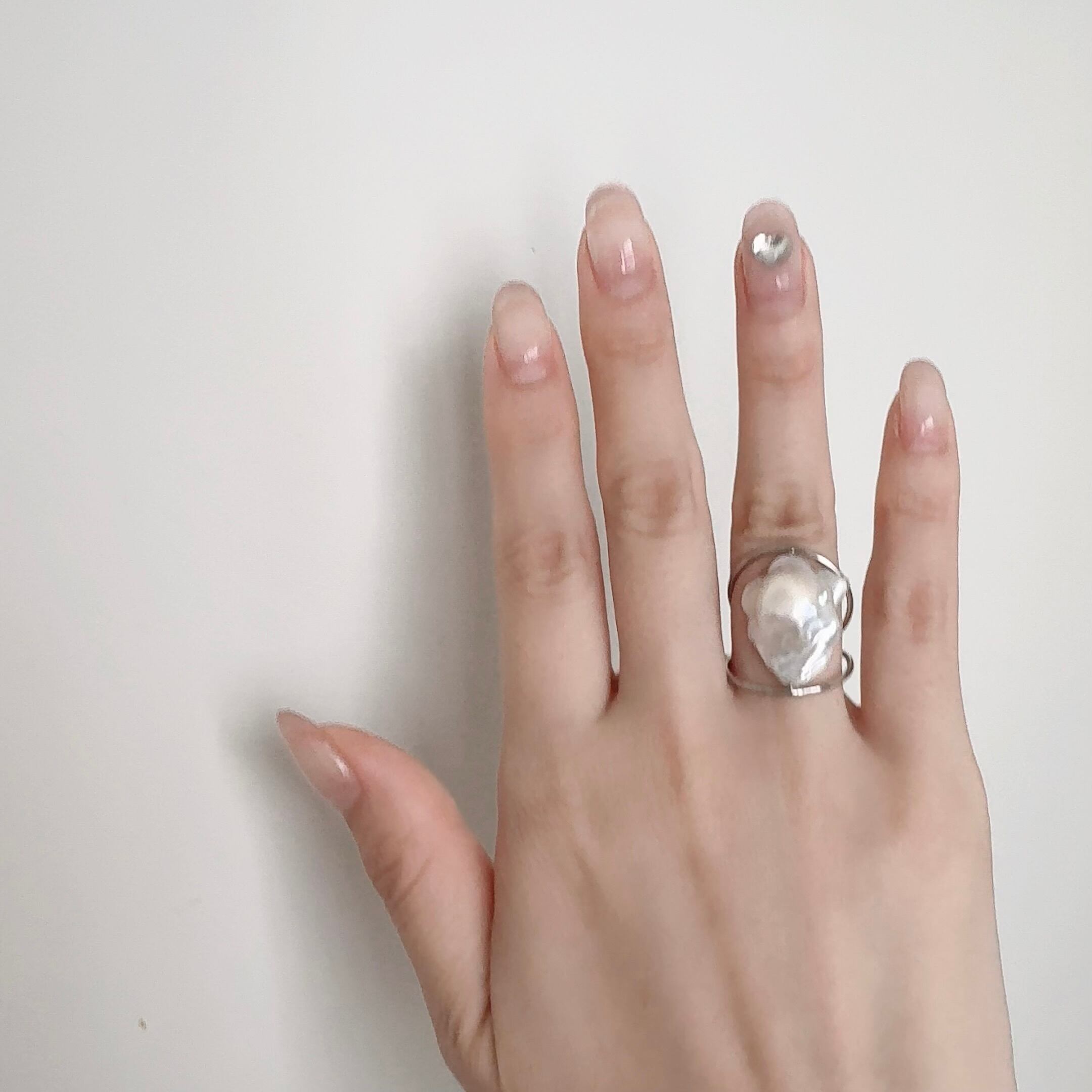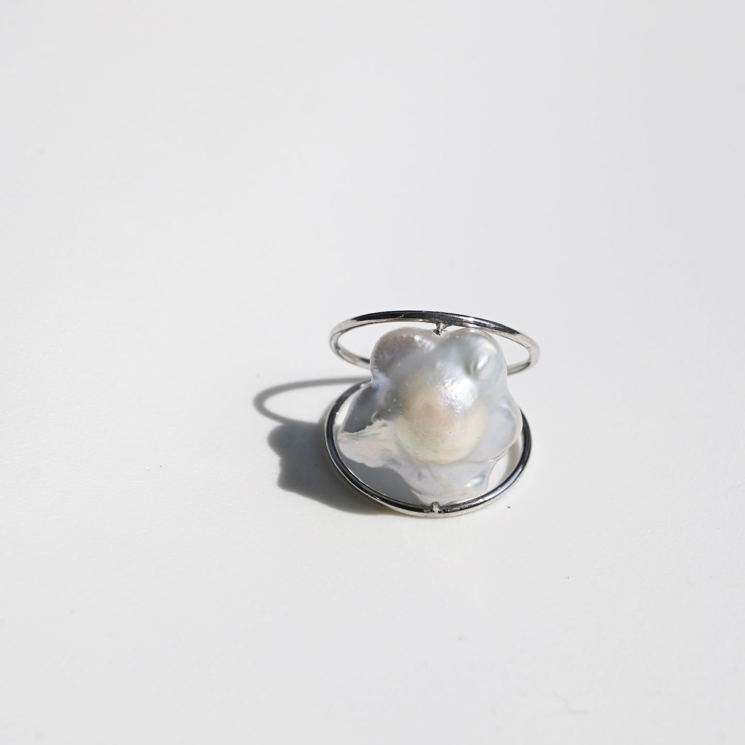 ベースはフラワー型ですが、大粒のパールが個性的で目を惹く作品です。