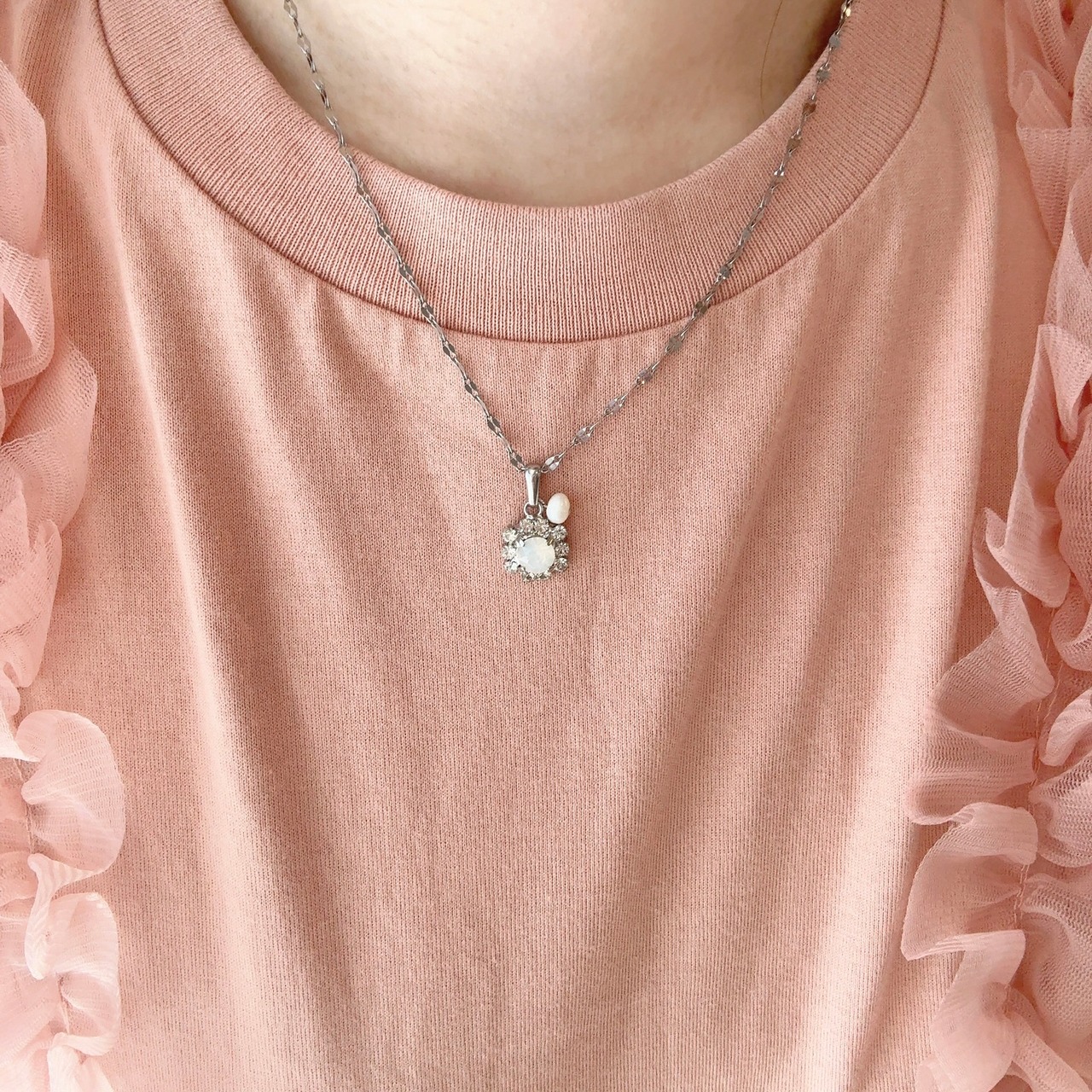 淡水パールがついた、ブーケのように可憐なイメージのネックレスです。