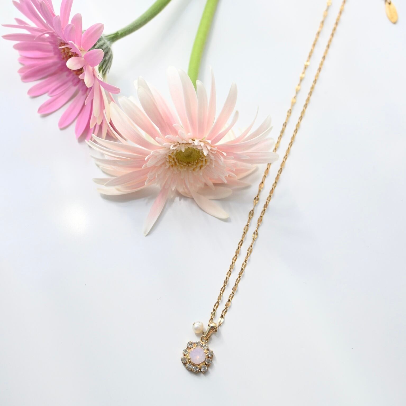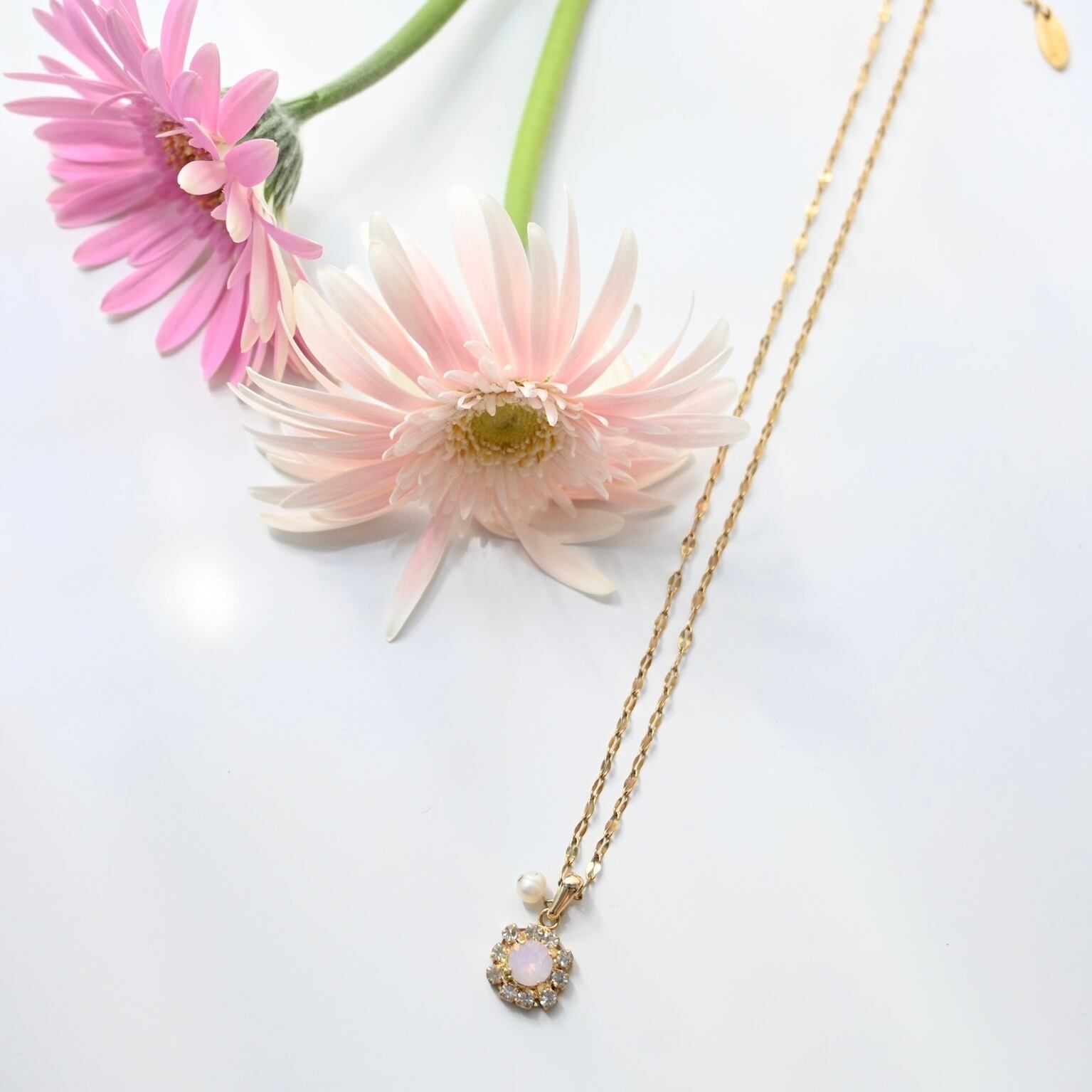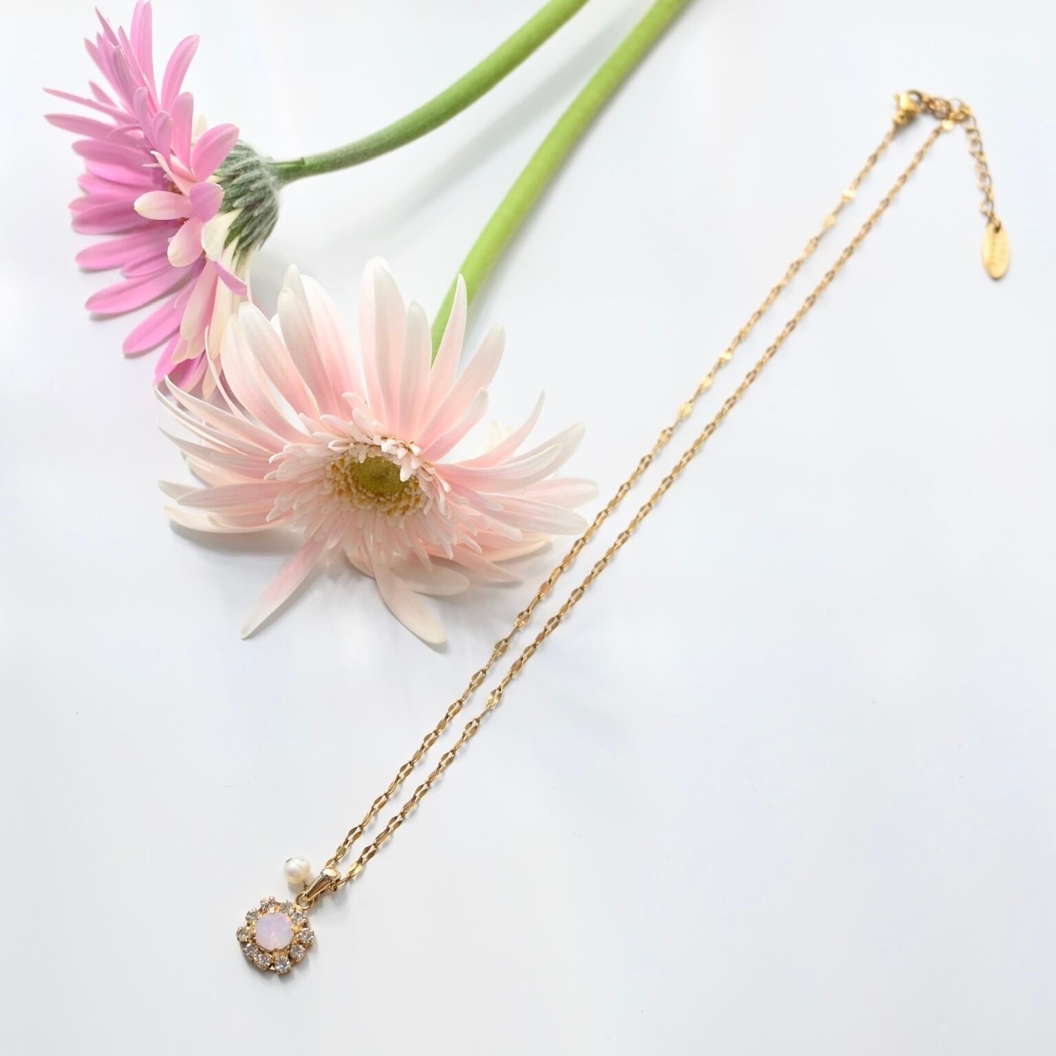 With Bouquet Necklace<Gold/Pastel Pink Rose>