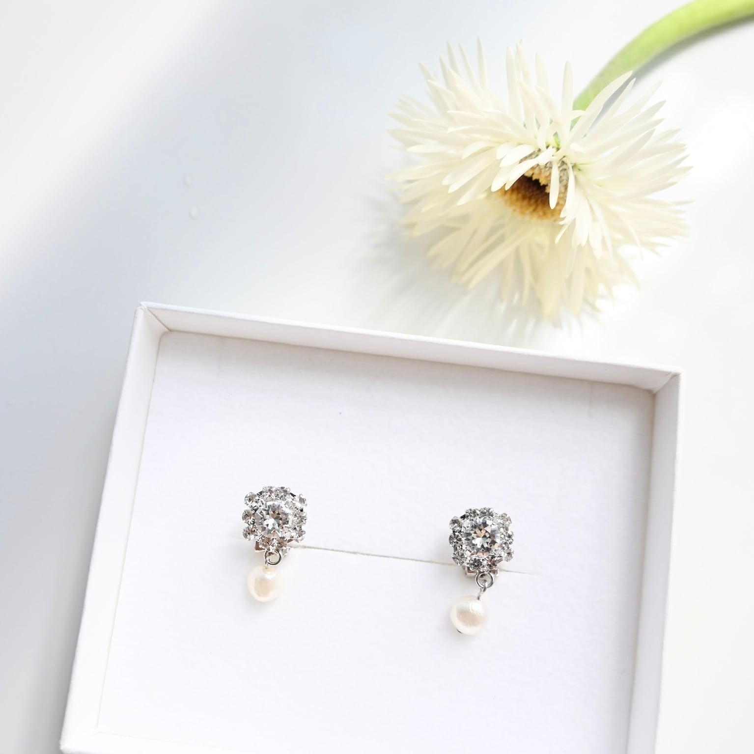 淡水パールがついた、ブーケのように可憐なイメージのピアス・イヤリングです。