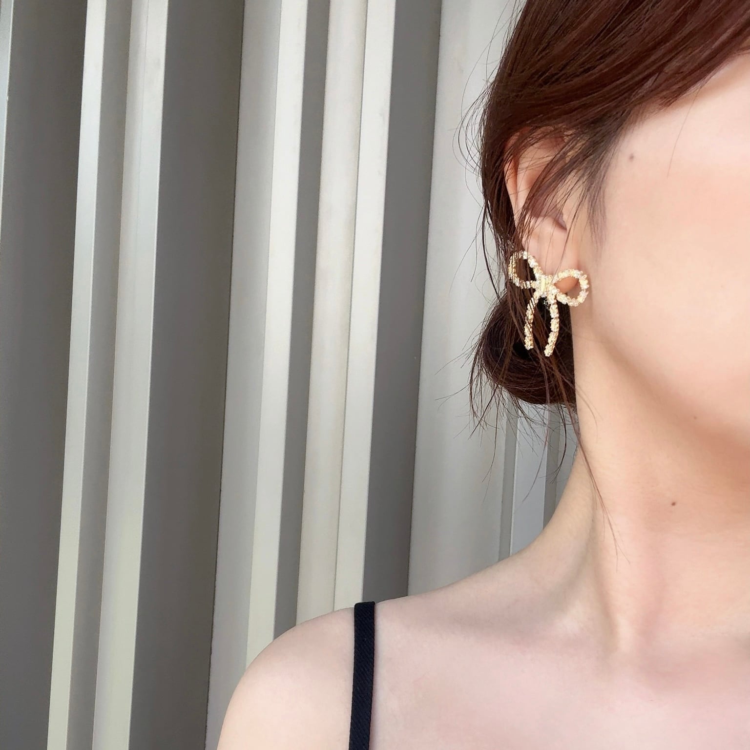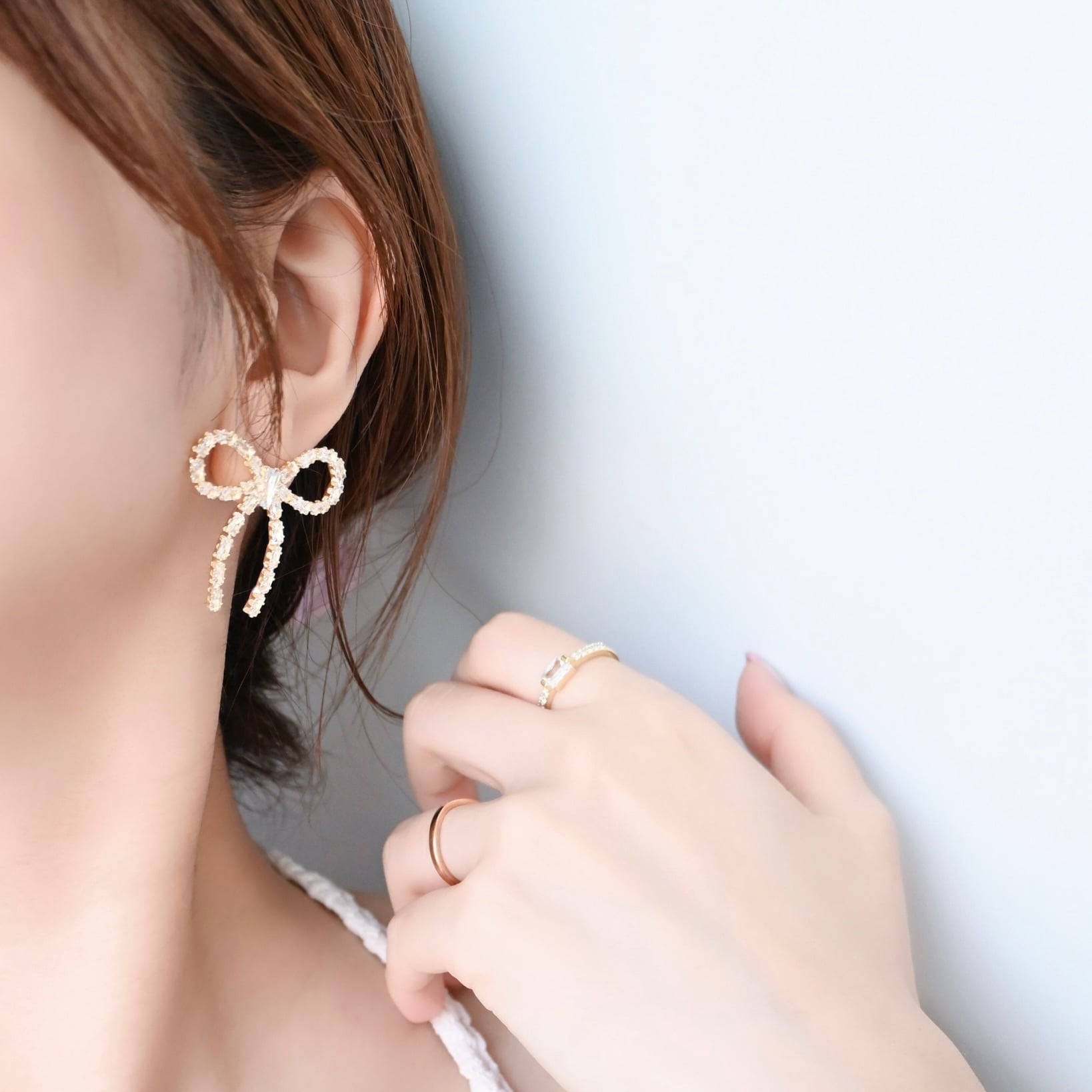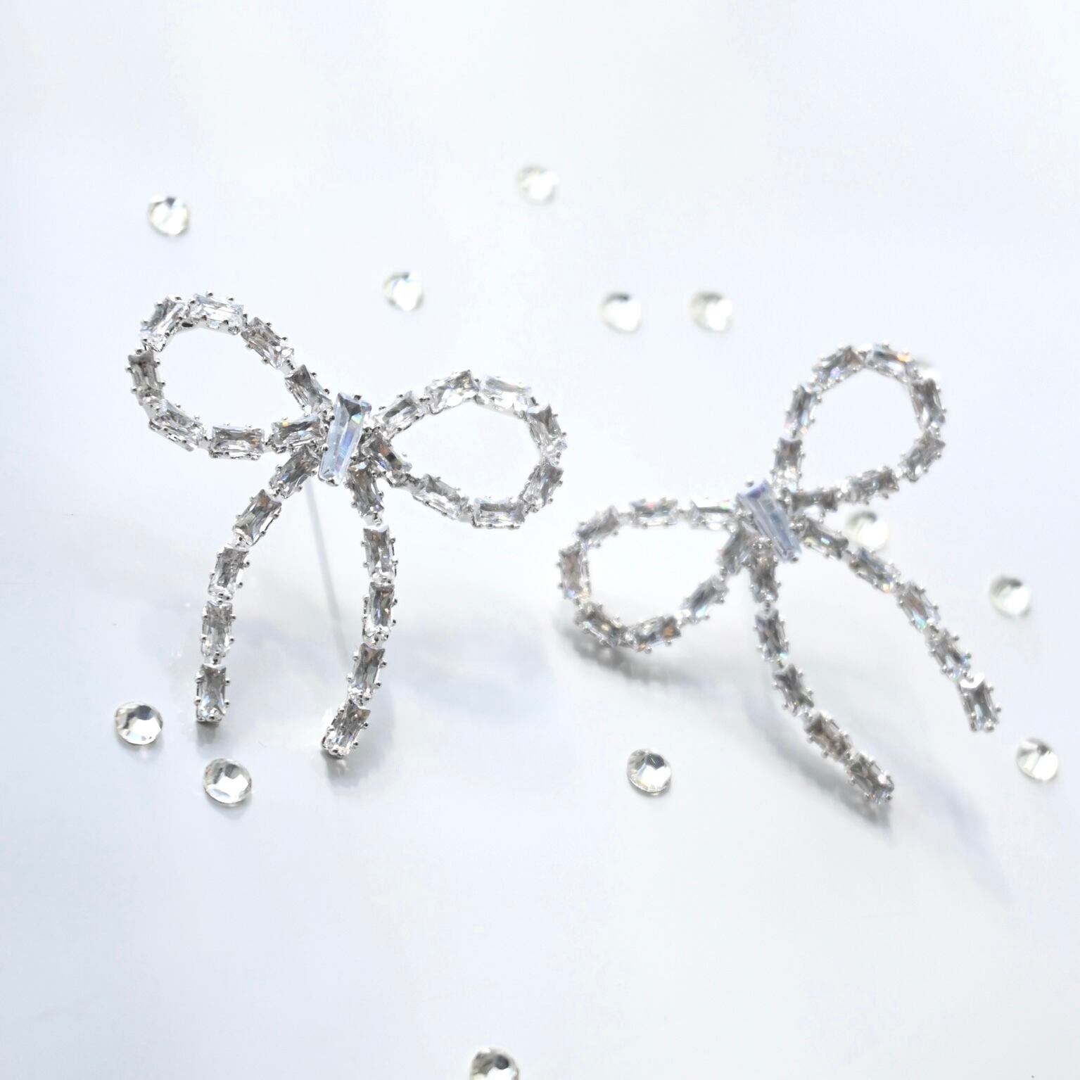 キラキラしたストーンが華やかなリボンモチーフのピアス・イヤリングシリーズです。