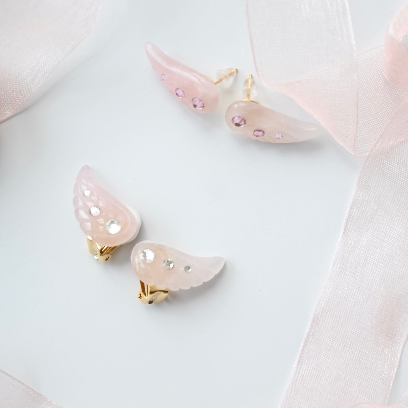 天然石を使用した、天使の羽をモチーフにしたイヤリングシリーズです。