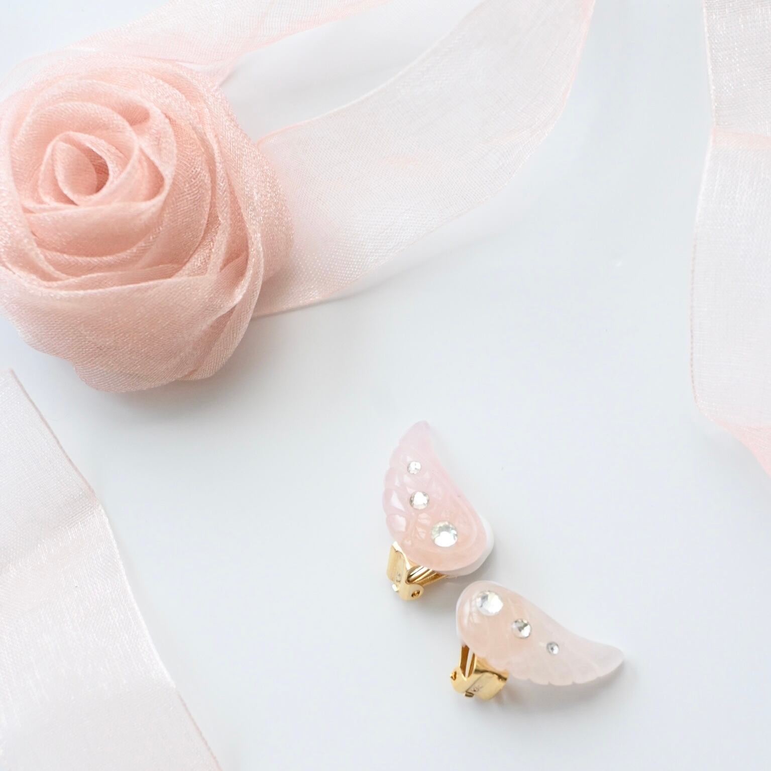 Amulet Angel Earrings <Pink Rose Quartz /Crystal>