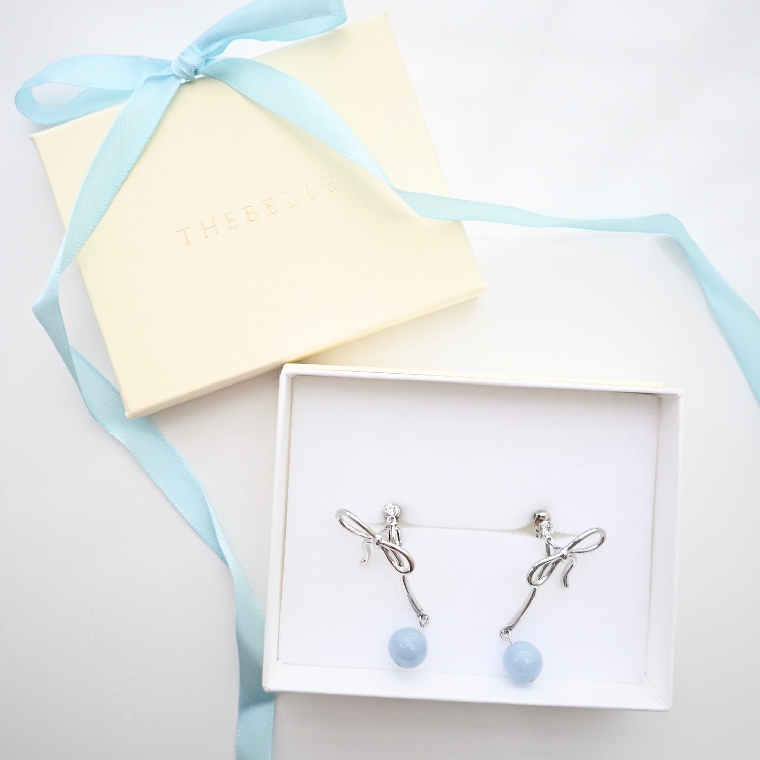 Lady Amulet Ribbon Earrings<Silver/Angelite Cherry>