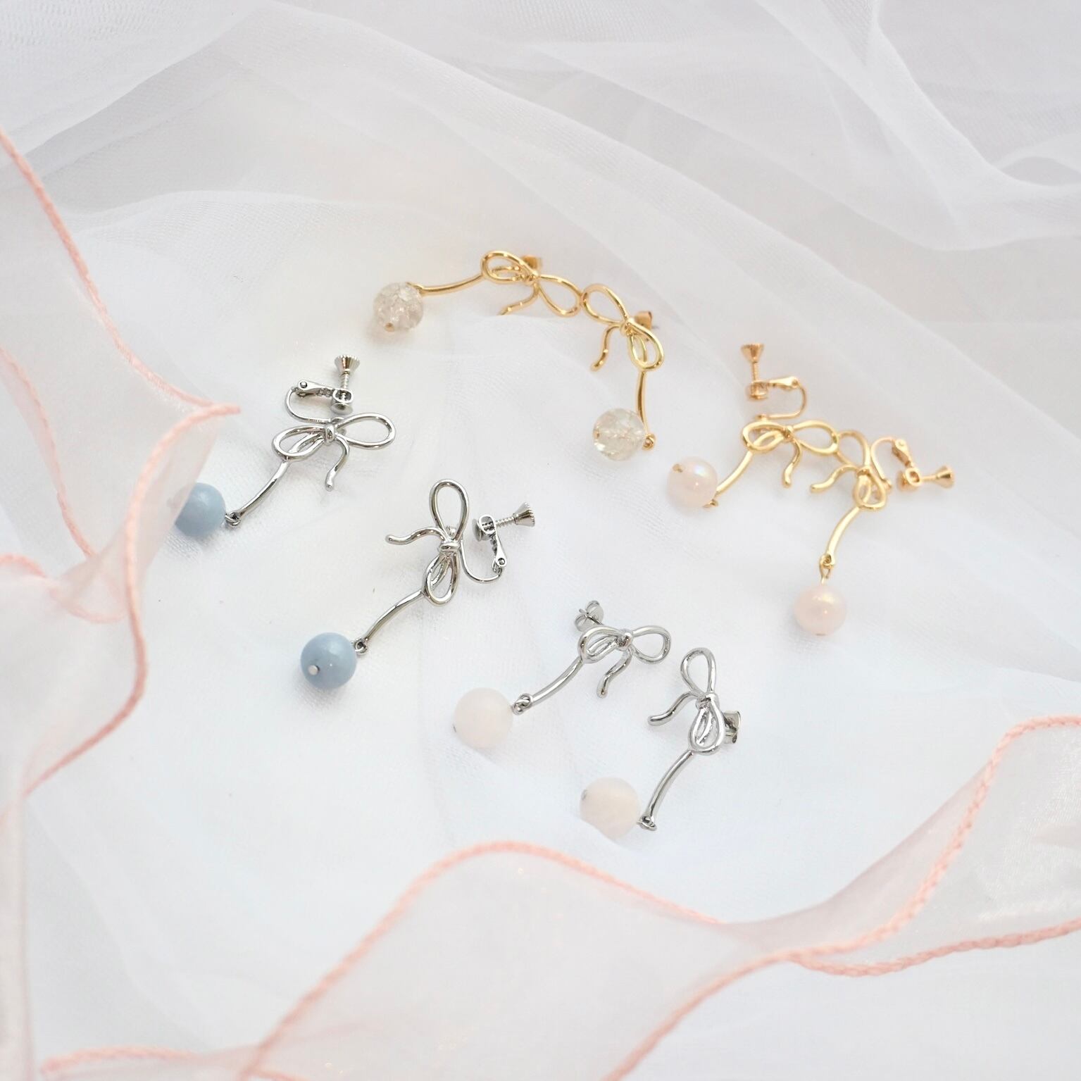 Lady Amulet Ribbon Earring<Silver/Frost Rose Quartz>