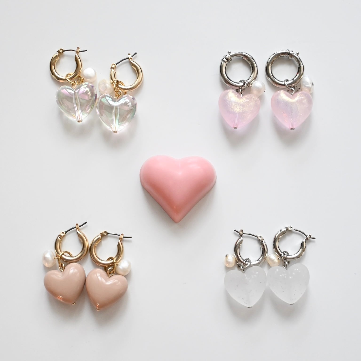 同じ大きさ、モチーフでも色や質感が違うと全く雰囲気が変わるのがLoveHoopsの魅力。